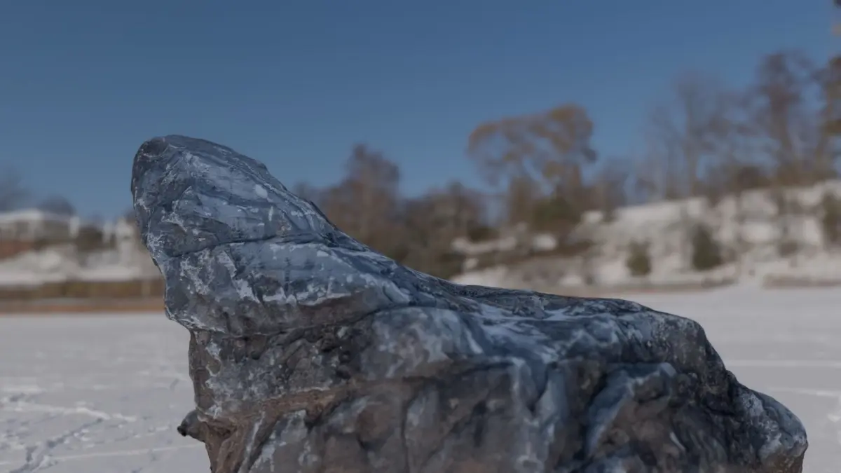 It's a rock on the street in Paju.It was filmed in winter, so there's snow on it.
