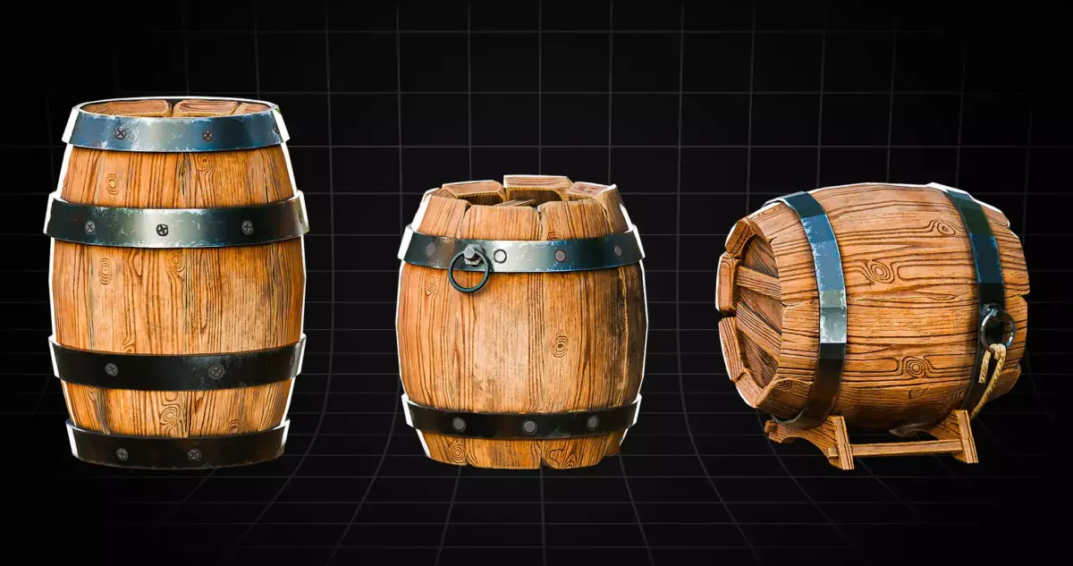Each barrel comes with PBR textures, including Base Color, Normal, Roughness, and Metallic maps, ensuring consistent and high-quality results under different lighting conditions. UVs are non-overlapping and properly unwrapped, allowing easy customization and texture adjustments if required.
