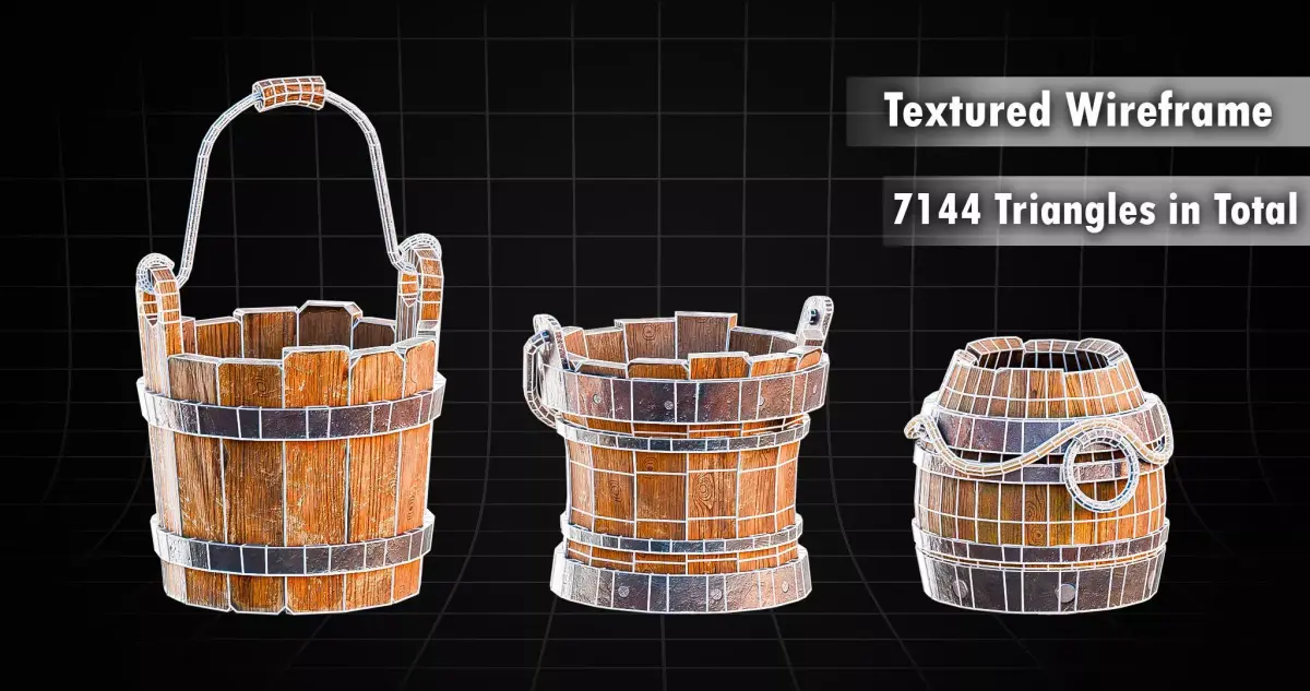 Whether you are building a stylized game world or enhancing a scene with detailed props, these wooden buckets provide a flexible and production-ready solution.