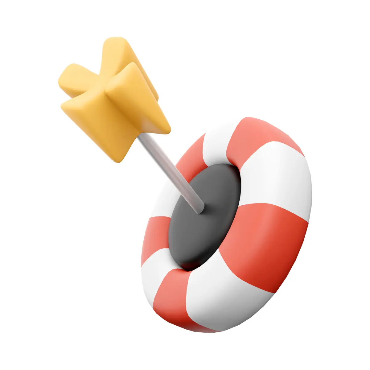 3d rendering Target Icon. 3d rendering Dartboard and dart icon
