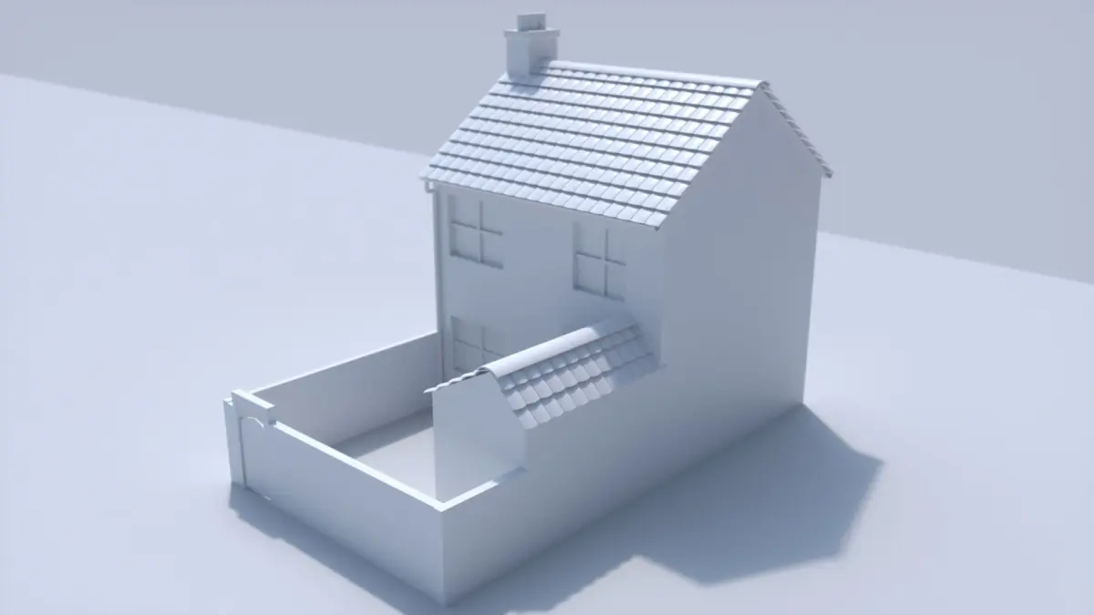 A low poly terraced house set up to be cloned into a terrace row. Contains main house, roof tiles, ridge tiles and drain pipes.