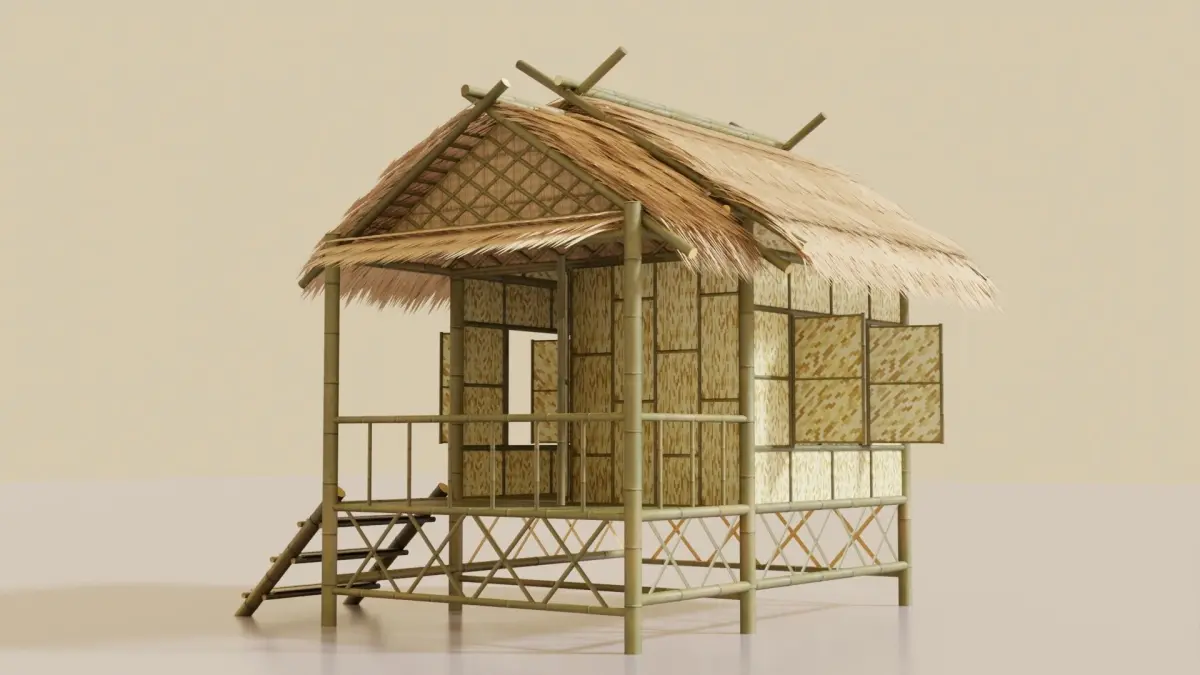 3d thai house made of bamboo Take the model from a real house in the countryside of Thailand. or perhaps a vacation home for tourists