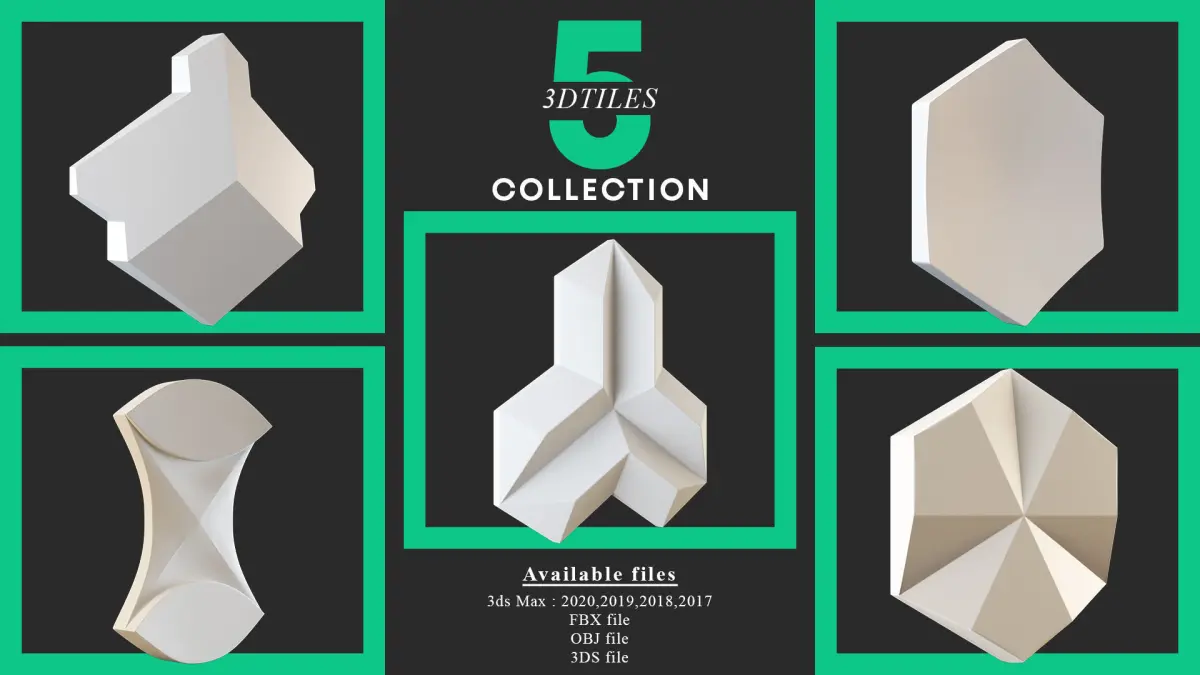 3D TILE -5 TILE COLLECTION pieces of textured wall panels 3D model