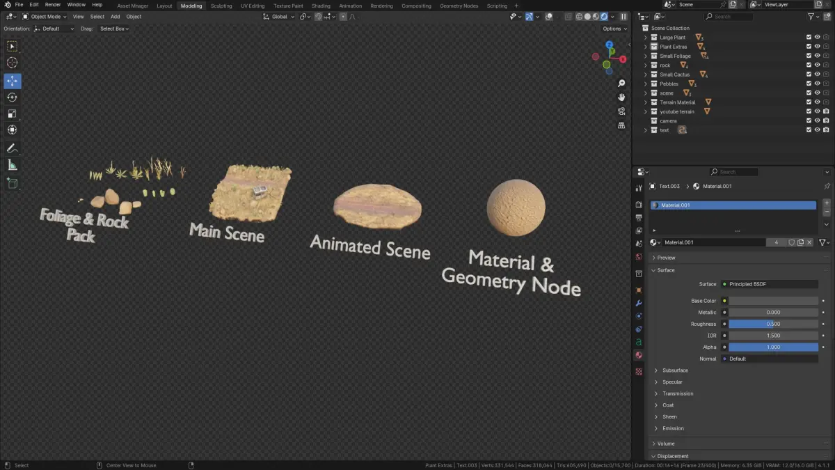 With customizable textures, intuitive object scattering, and powerful controls, this tool turns your vision of vast desert landscapes into reality. From rugged terrain to dynamic cacti and pebble scattering, this node setup gives you full control over your scenes.