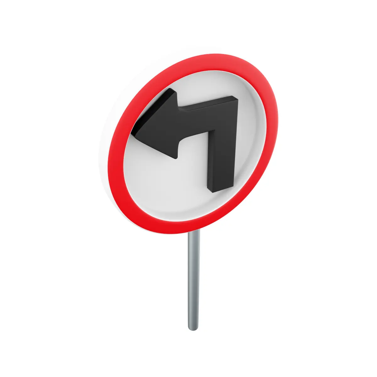 3d render Traffic Sign, Turn left ahead sign on white background. 3d rendering Turn left ahead sign, cartoon icon