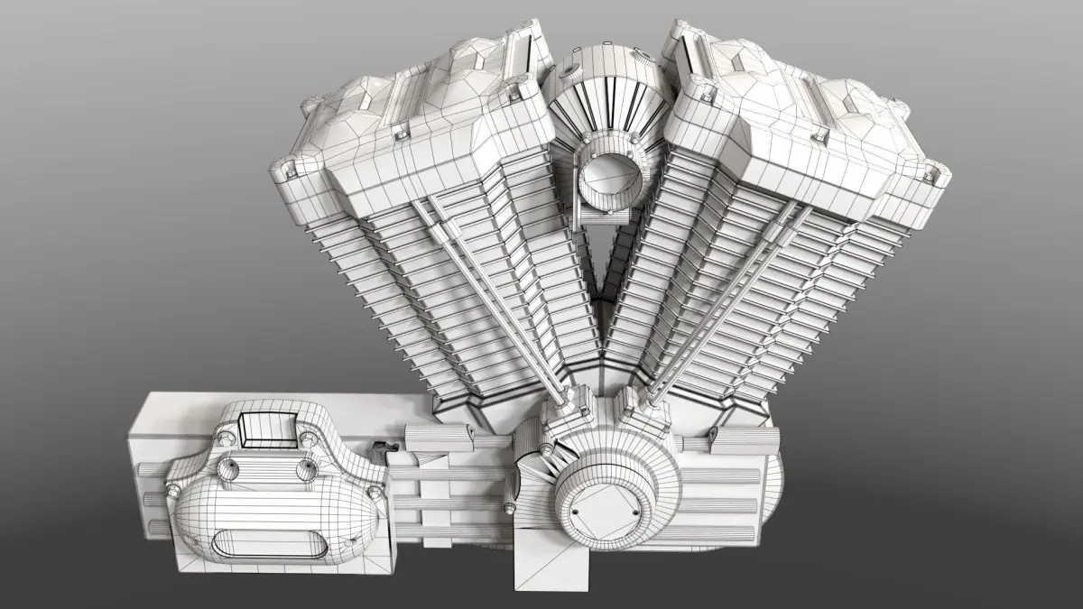 3D model of a Motorcycles V-Twin Engine modelled in 3D Studio Max 2023 which renders as shown in images with 3D Studio Max's standard Arnold Renderer.