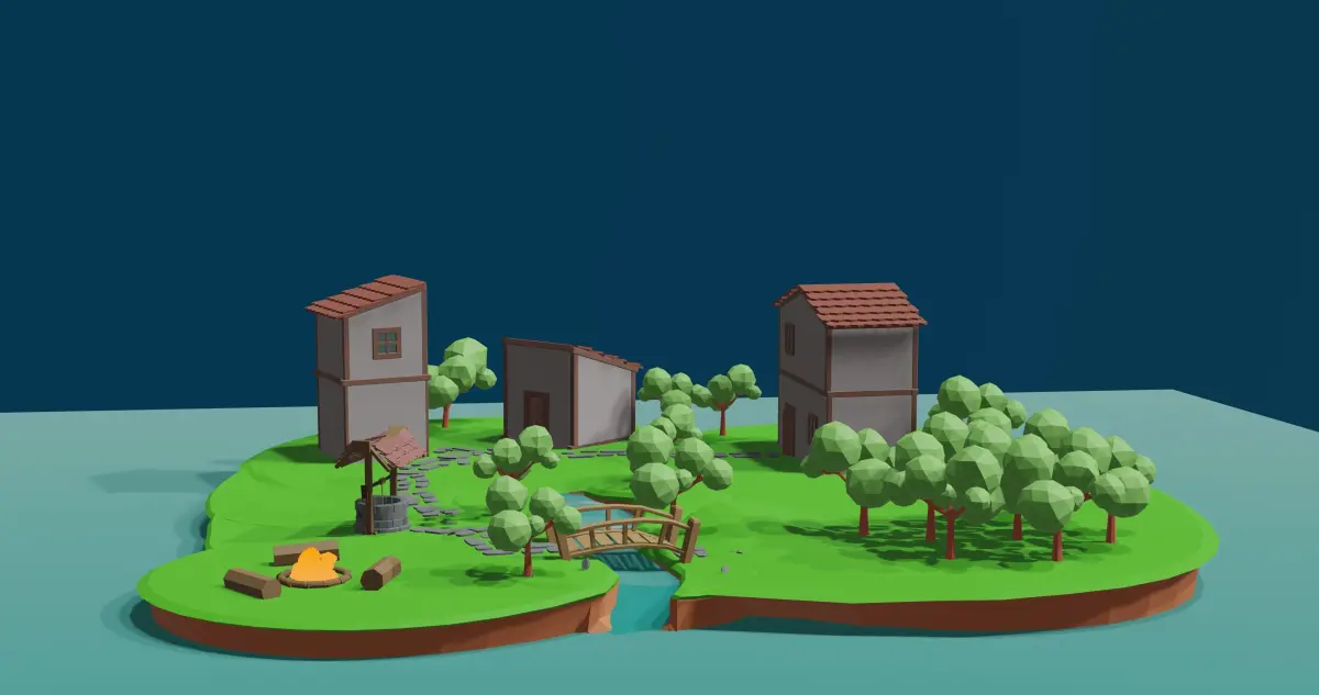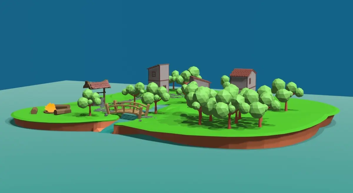 HomeCatalog3d village low poly map of forest Free low-poly 3D model
