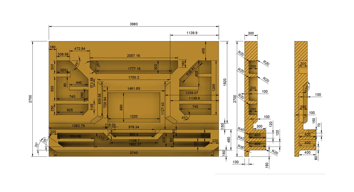 What You Get: Vector files (DXF) for cutting each element on a CNC machine. 3D models in STL, OBJ, and STEP formats for viewing or 3D printing. A design calculated for installation with a 20mm gap between panels. TV niche size – suitable for a 55-inch screen. Adjustable height thanks to the ability to trim the upper segments without losing functionality. Shelf slots with special recesses for secure placement of horizontal elements.