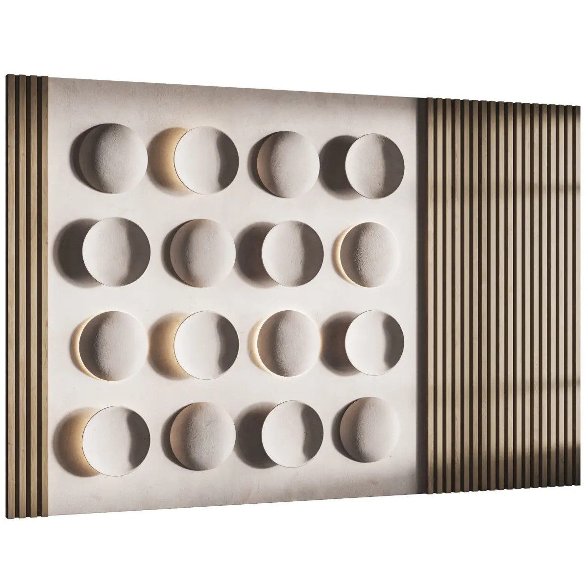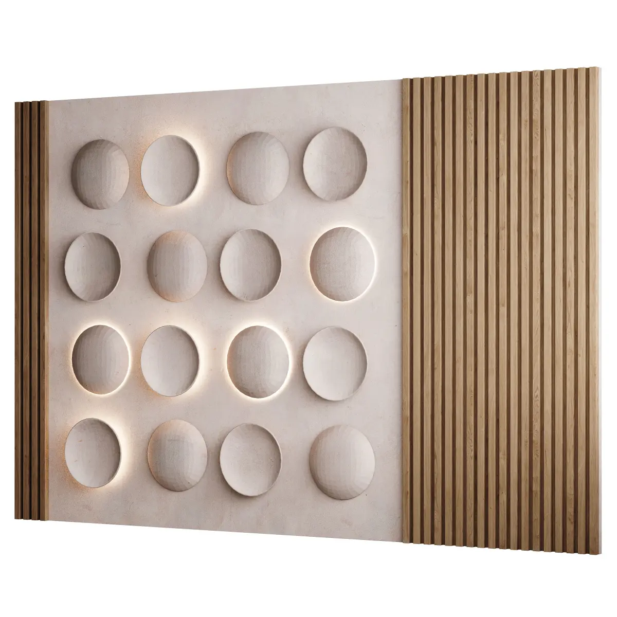 Tags: 3D wall panel, headboard panel, modern feature wall, circle relief wall, wood slat panel, Corona Renderer design, sculptural wall panel, interior 3D decor, circular indentation design, contemporary wall panel, FBX headboard, OBJ wall decor, CoronaLightMtl material, architectural wall element, luxury interior panel, textured 3D wall, modern bedroom backdrop, decorative wall cladding, minimal design wall panel, 3Ds Max model