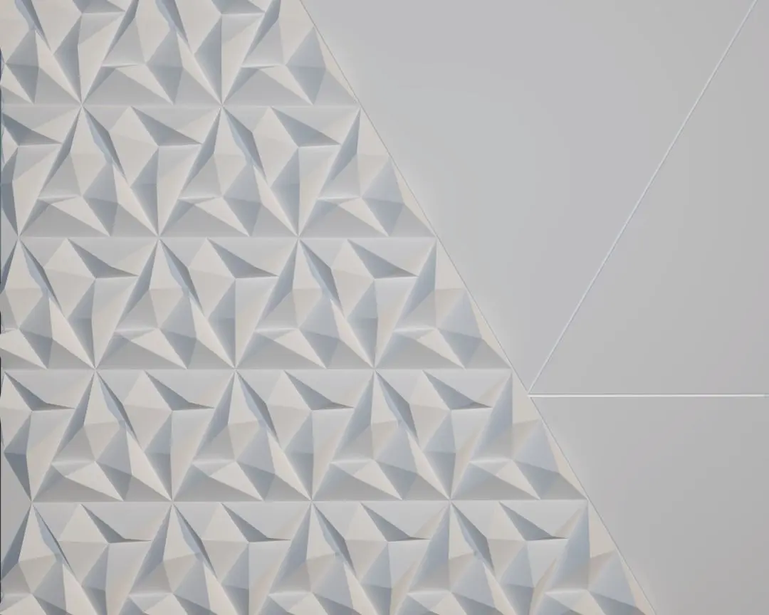 Give your walls a touch of style and sophistication with this 3D wall panel. This panel features a triangular pattern of random sizes that create a dynamic and eye-catching effect. This 3D wall panel is perfect for adding some dimension and personality to your living room, bedroom, or office.