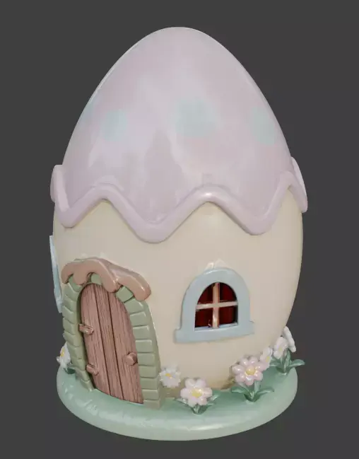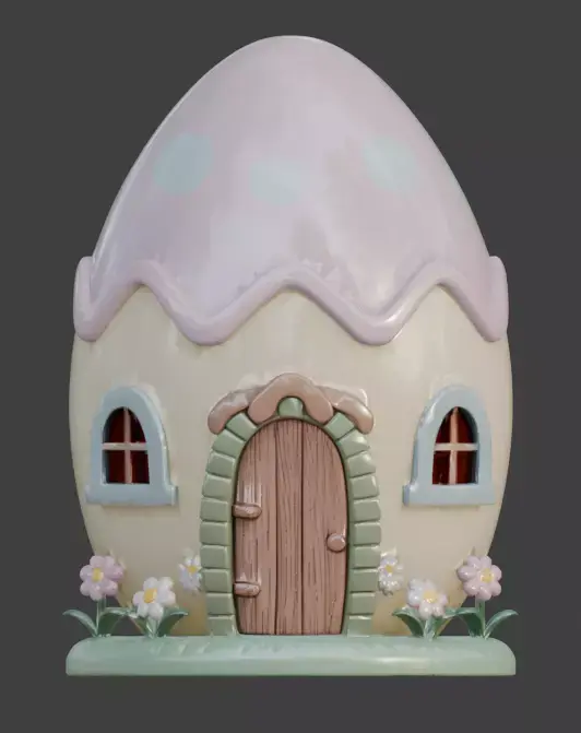 TAGSEgg House, 3D Model, Whimsical, Cottage, Fantasy Architecture, Easter, Spring, Floral, Tulip, Daisy, Pastel, Pink, Blue, Yellow, Decorative, Garden, Fairy Tale, Stylized, Animation Asset, Rendering, Digital Art, Game Design, Cute, Festive, Holiday, Flowers, Nature, Miniature.