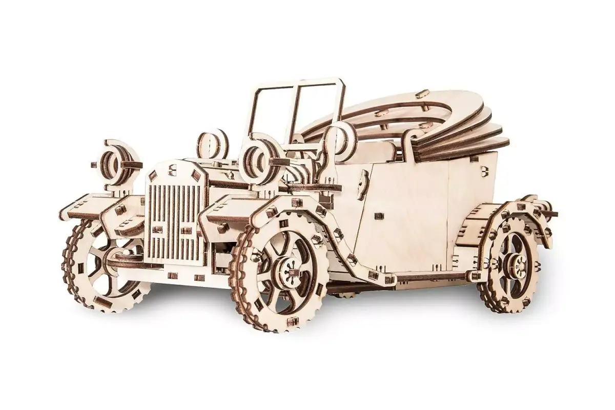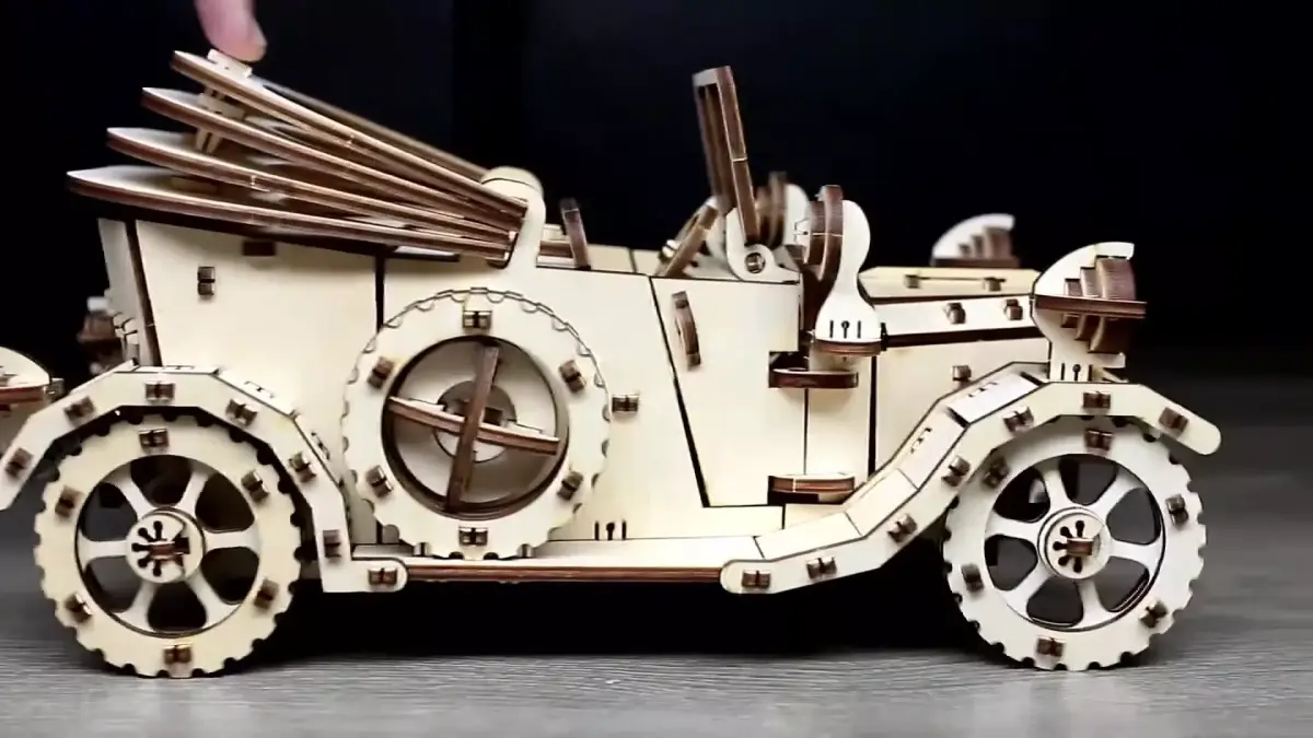 Build your own retro-style convertible with this 3D wooden antique car puzzle model. Designed with precision laser-cut wooden parts, this vintage car kit combines elegance, craftsmanship, and nostalgia. Perfect for collectors and DIY enthusiasts, it features realistic detailing — from spoked wheels to a classic open-roof design. Assemble it easily without glue or tools and use it as a unique showpiece, desk décor, or gift for car lovers. Made from premium eco-friendly natural wood for lasting durability and charm.Key Highlights:• 3D wooden mechanical puzzle car model• Vintage convertible design inspired by early automobiles• Laser-cut precision from high-quality natural wood• No glue or tools required for assembly• Ideal for adults, hobbyists, and collectors• Perfect as a home décor, office showpiece, or DIY craft gift• Includes CAD + CDR + step-by-step assembly instructions