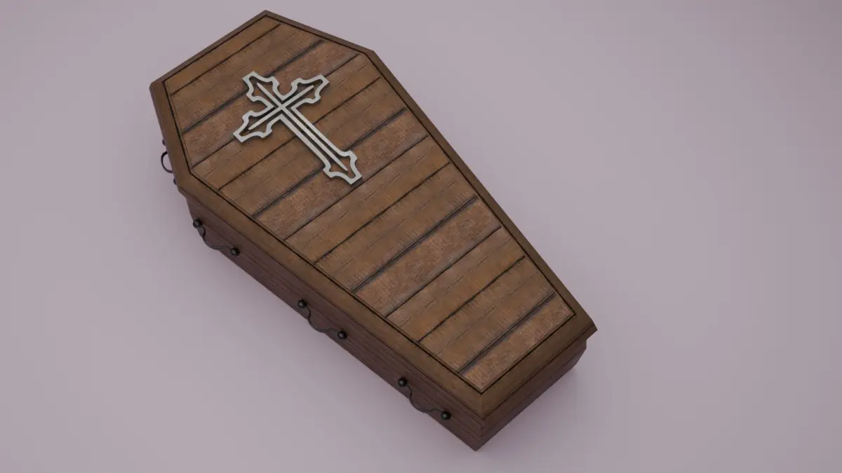 The coffin, sarcophagus or death box is made in blender, the texture is procedural with the blender kit addon