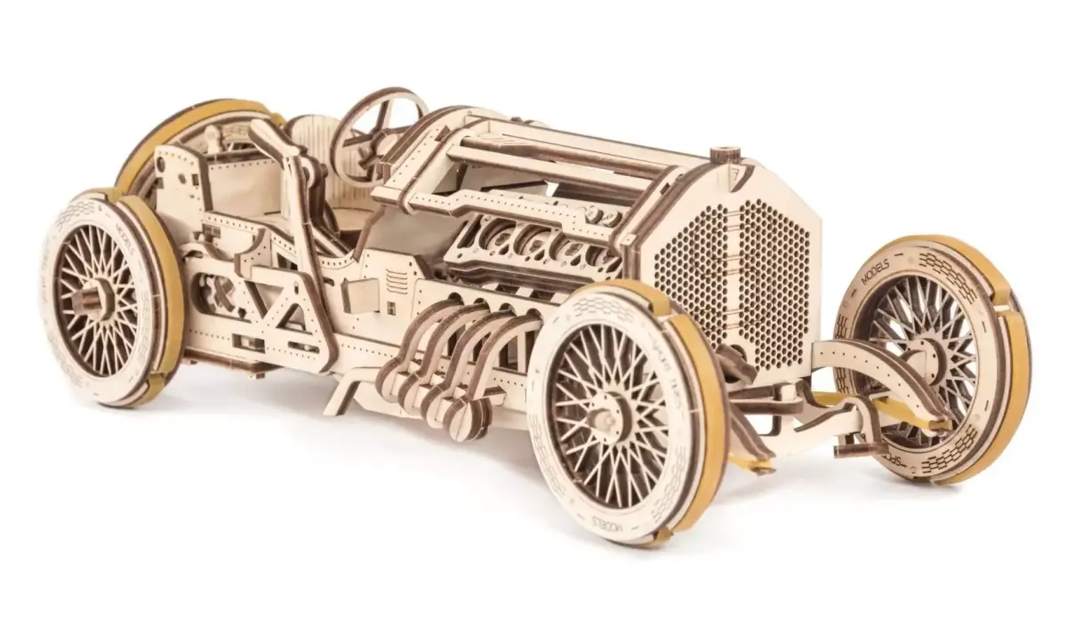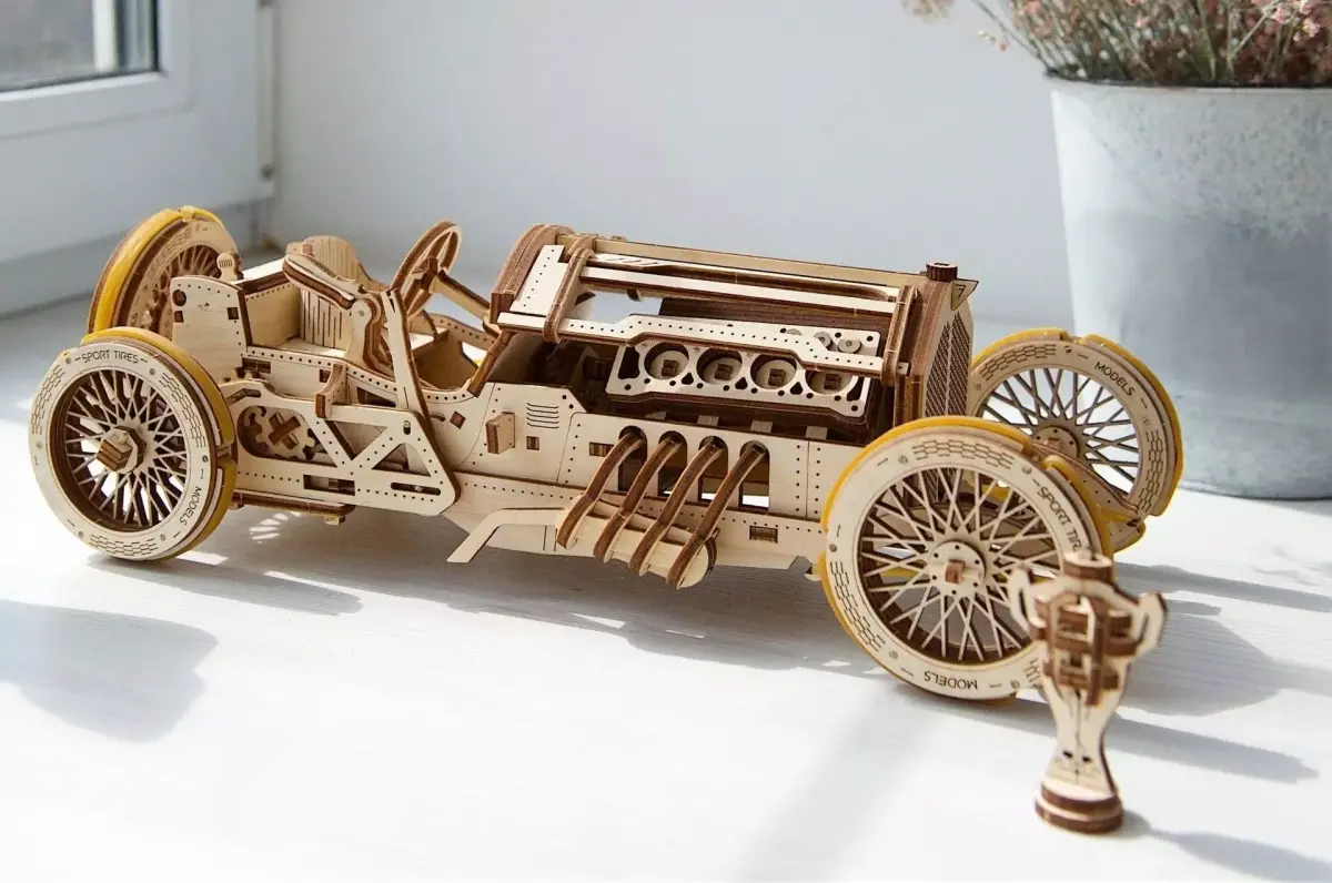 Experience the excitement of early Grand Prix racing with this 3D wooden mechanical car model featuring a detailed 16-valve V8 engine, transmission modes, and rubberized wheels. Designed for both collectors and engineers, it combines classic race aesthetics with precision mechanics. Assemble it easily without glue or special tools and enjoy the craftsmanship of an authentic old-school racing replica. Perfect for DIY hobbyists, model builders, and mechanical design enthusiasts.Key Highlights:• Fully functional 3D wooden mechanical puzzle• Features realistic V8 engine and working transmission• Rubberized tires for smooth motion and long drive range• Old-school Grand Prix design inspired by early race cars• Easy assembly with CAD + CDR + PDF instructions included• Made of premium-grade, eco-friendly plywood• Ideal gift for car lovers and engineering hobbyists