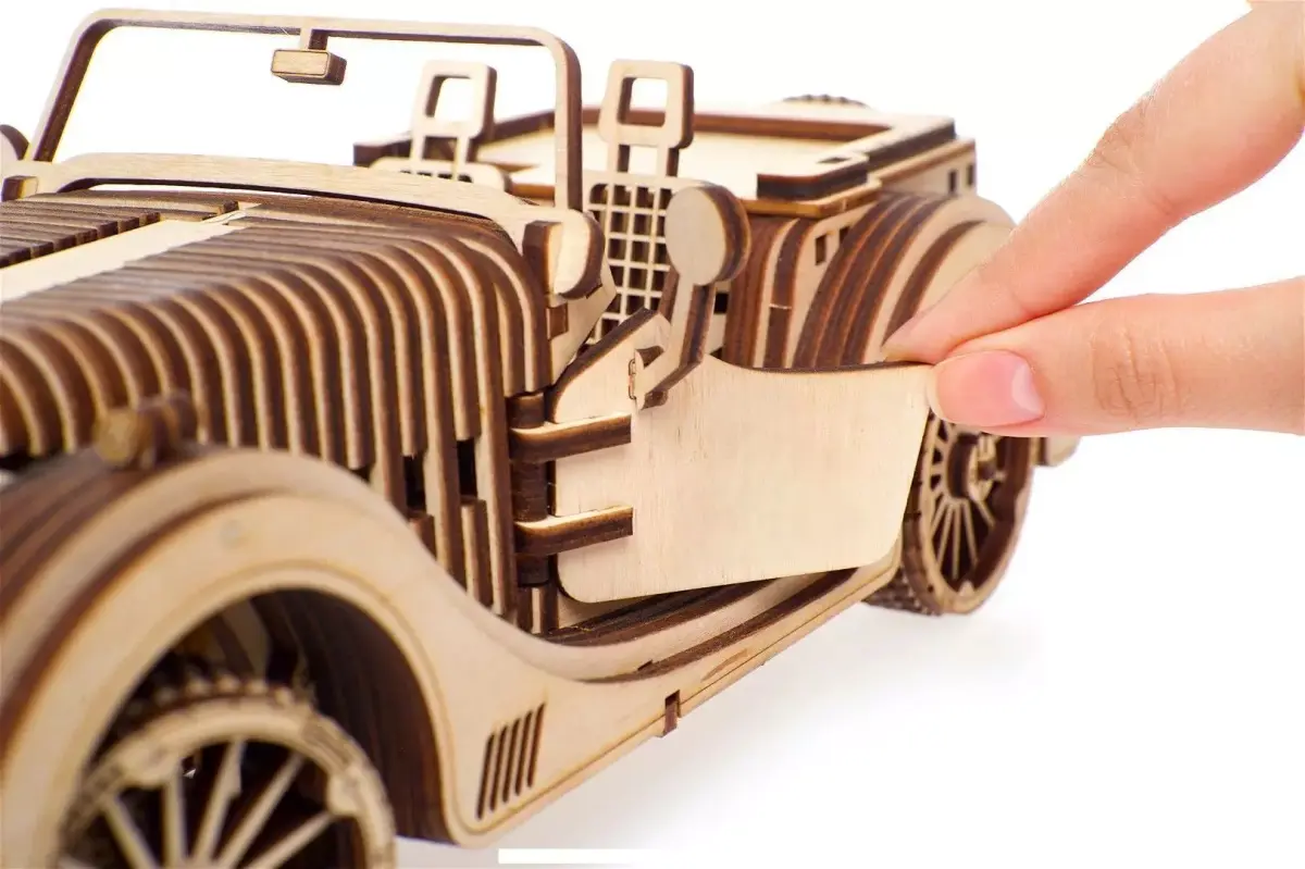 Bring the charm of classic motoring to life with this 3D wooden mechanical Roadster VM-01 model. Inspired by vintage cars of the 1930s–50s, this precision-cut wooden puzzle blends retro elegance with modern engineering. Each part is laser-cut from high-quality, eco-friendly plywood for a perfect fit. The model features functional steering, opening doors, and realistic mechanics. Assemble it without glue or tools and enjoy a smooth driving motion powered by mechanical transmission. A must-have collectible for car lovers, DIY builders, and design enthusiasts.Key Highlights:• Premium 3D wooden mechanical puzzle kit• Vintage-inspired design with modern detailing• Functional steering wheel and opening doors• Smooth-running transmission with moving parts• Laser-cut, eco-friendly plywood construction• No glue or special tools required for assembly• Includes CAD + CDR + illustrated instructions• Perfect for collectors, hobbyists, and kids