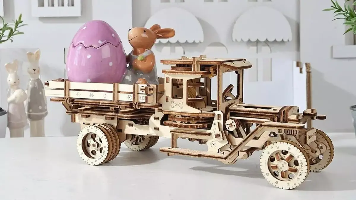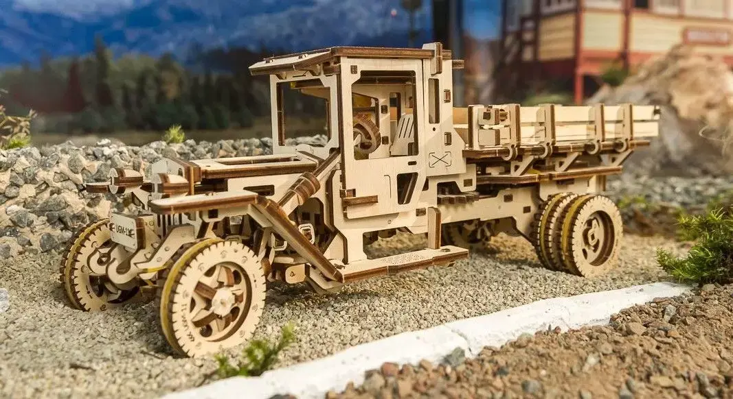 Build your own vintage truck with this 3D wooden mechanical model kit — a masterpiece of design and engineering. This self-propelled UGM-11 truck puzzle features a working four-cylinder rubber band engine, steering system, and fully functional gears. Each laser-cut wooden piece fits perfectly for smooth, glue-free assembly. Experience the thrill of mechanical motion as the truck moves forward or backward like the real thing. Perfect for hobbyists, mechanics, and collectors who appreciate intricate craftsmanship and timeless style.Key Highlights:• 3D self-propelled wooden truck model kit• Realistic design with visible mechanical parts• Functional 4-cylinder rubber band-powered engine• Steering and moving wheels for lifelike motion• 420 precision laser-cut wooden components• No glue or special tools required for assembly• Includes CAD + CDR + illustrated manual• Ideal gift for mechanics, model builders, and collectors