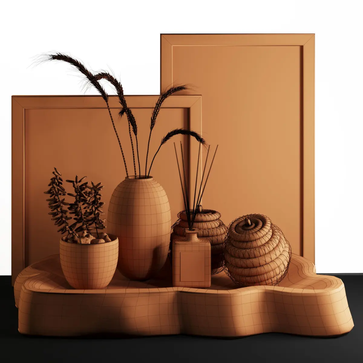 3dsMax files (.max) are saved in version 2015, so it is recommended to open them in versions 3dsMax 2015 aboveCorona Renderer (3) and Vray (3.60.03) were used for renderingyou will get a decoraive set include wheat, decorative plant, vase, special wooden basket, frames, and extra natural wooden tray,