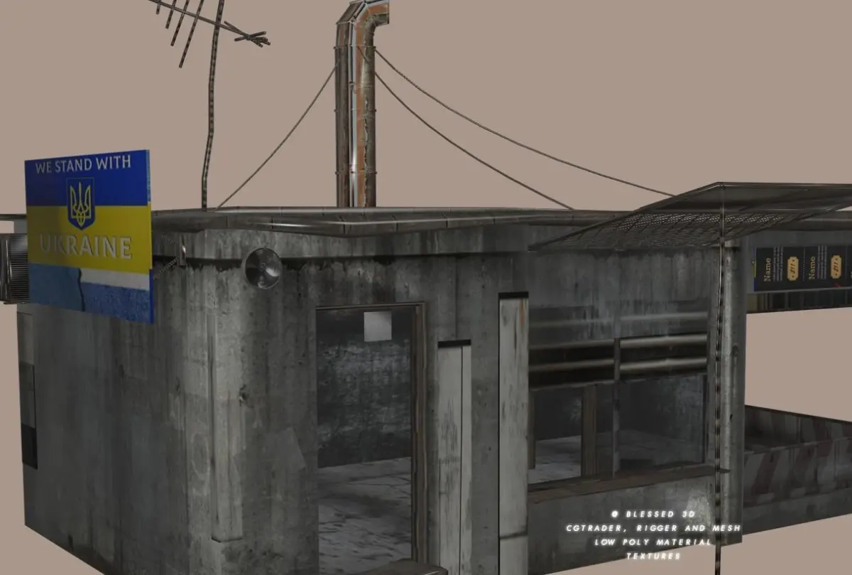 3DBlessed: Ukraine Survive Shack Low Poly 3k Verts/Faces-Textures, Uv Maps, Ao's, Metallic-.DAE-.OBJ-.FBX-.MtlAll Textures and files are in one single compressed .ZIPIf to upload mesh to imvu or secondlife the prims = 19 Land impact.