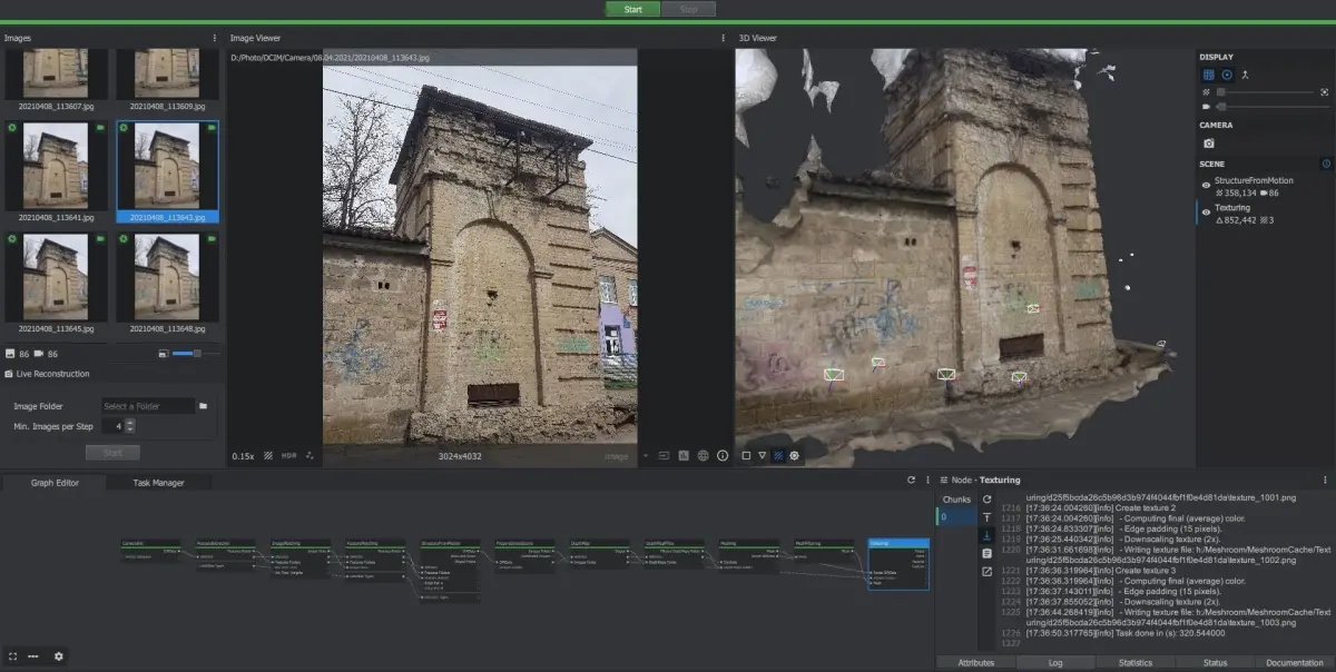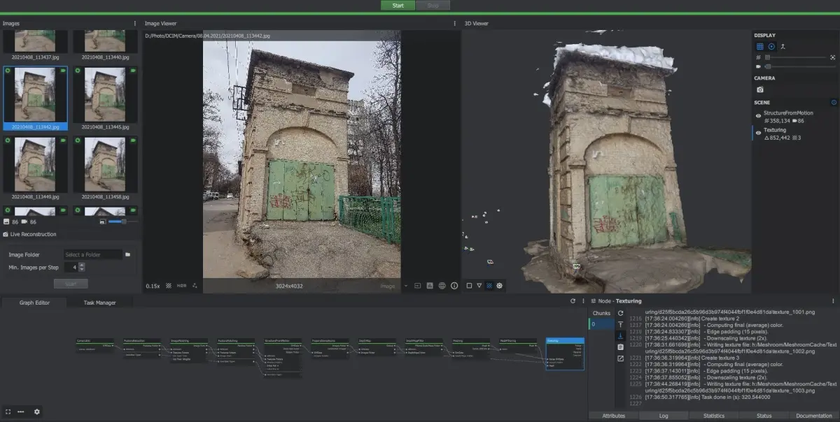 Big building made with photogrammetry in .zep (3DFlow Zephyr).big building.zip is for original photos (photo source).big building OBJ.zip is for Meshroom dot obj files.I am an author of photography and 3D.