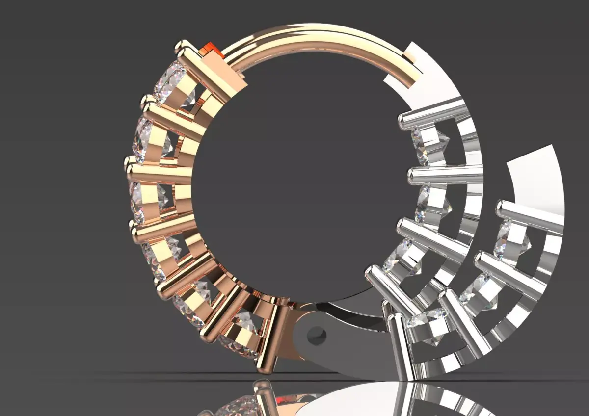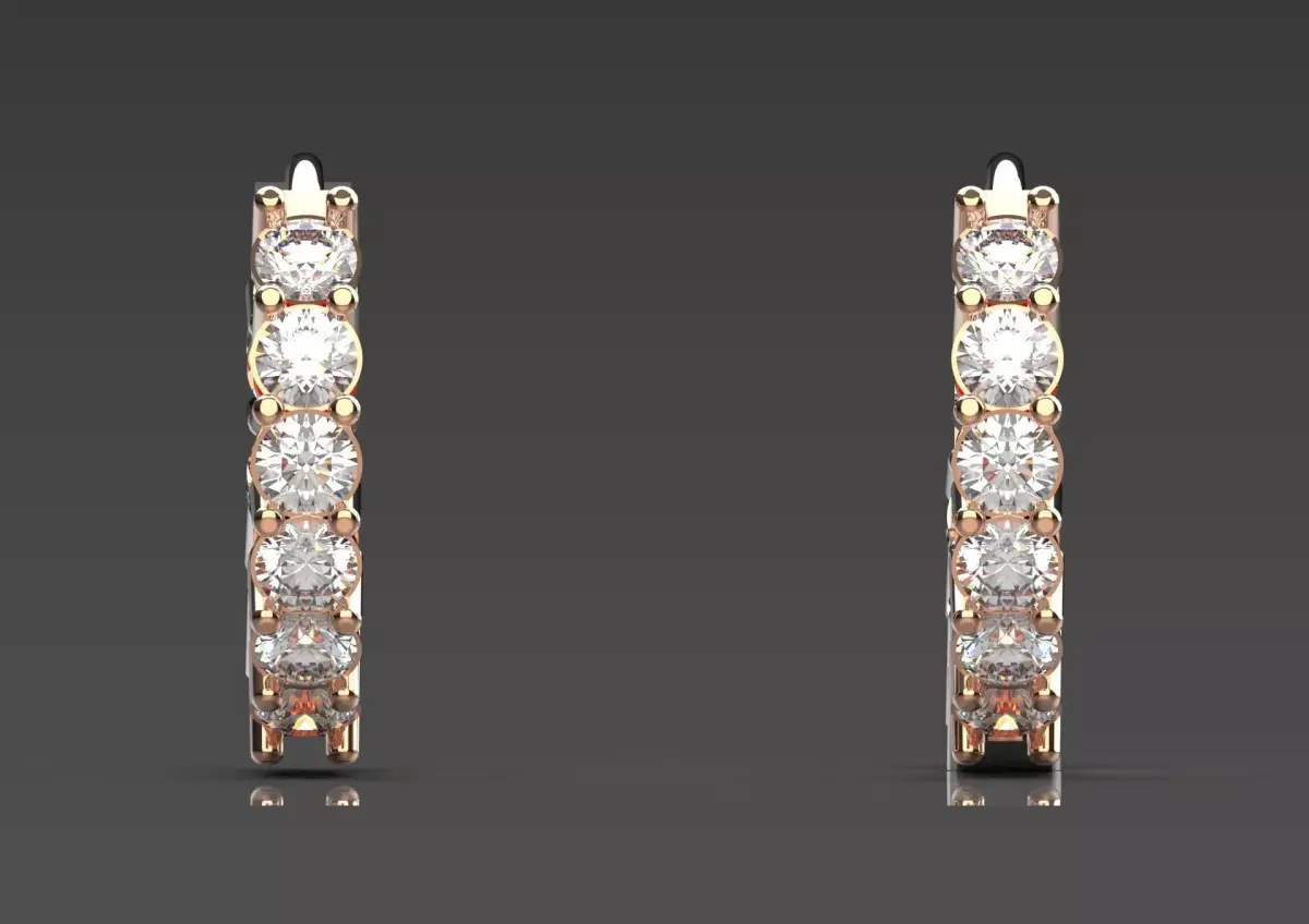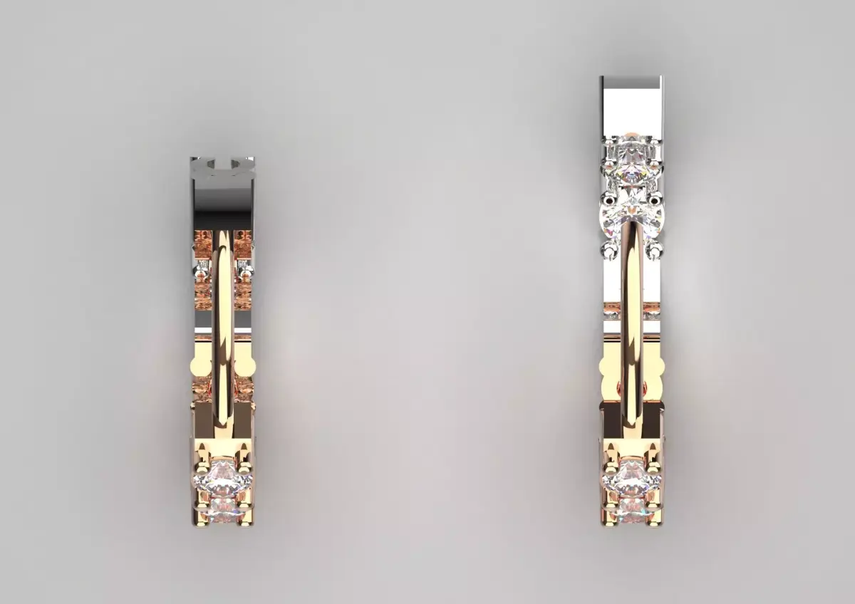 This file contains a detailed and fully Manufacturing Ready 3D model of a two-tone double-dipped gem hoop earring that is in high demand in the market.