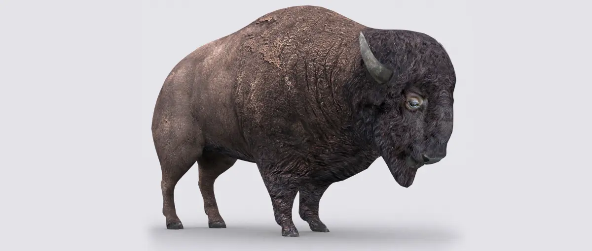 Bison animated lowpoly 3d model.1620 triangles mesh. High detailed 2048x2048 textures.Diffuse, normal and specular maps.