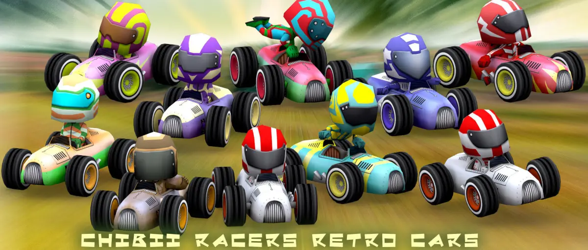 Chibii racers retro cars. Animated lowpoly 3d pack optimized for mobiles.10 cars skins, 20 chibii racers skis.2048x2048 .png texture source files included.Available in a Chibii racers bundle.