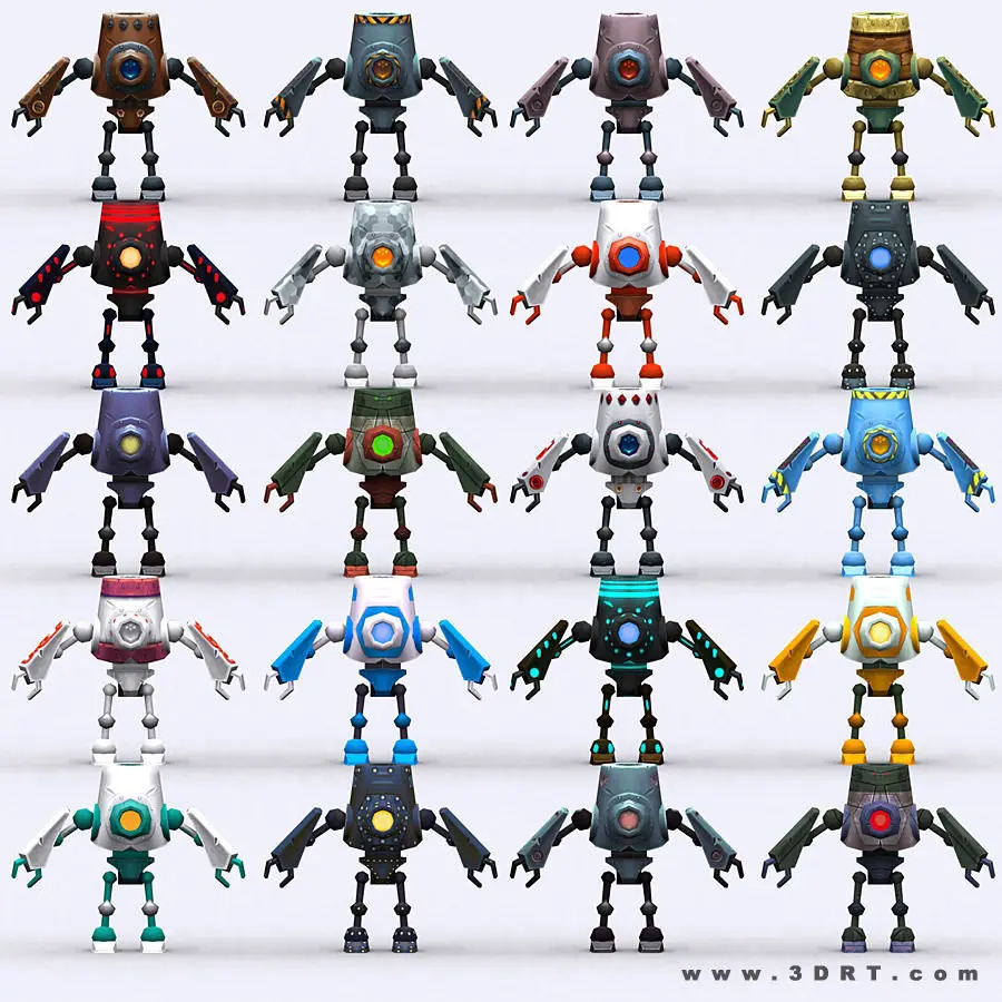 Chibii Robot -05 lowpoly 3d animated pack.-20 skins versions -2048x2048 diffuse .jpg textures.Available in a Chibii Robots bundle pack.