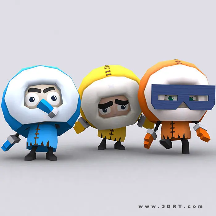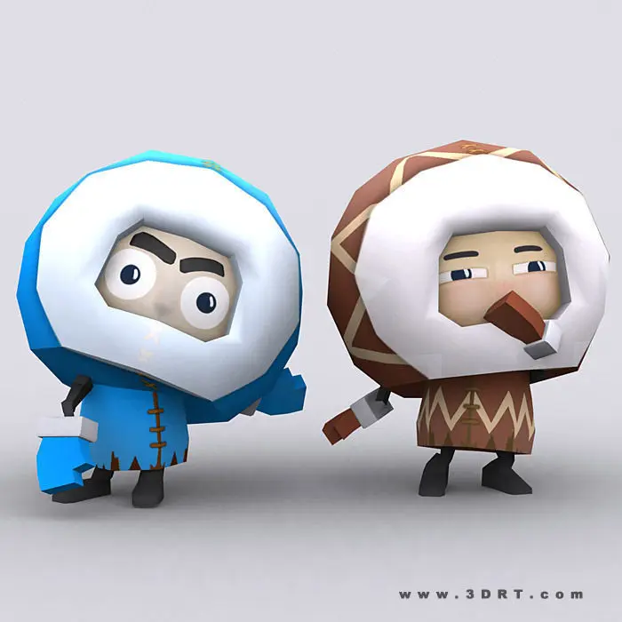 Eskimo vs penguins 3d lowpoly pack. 3 meshes for both sides + 5 texture versions on each.