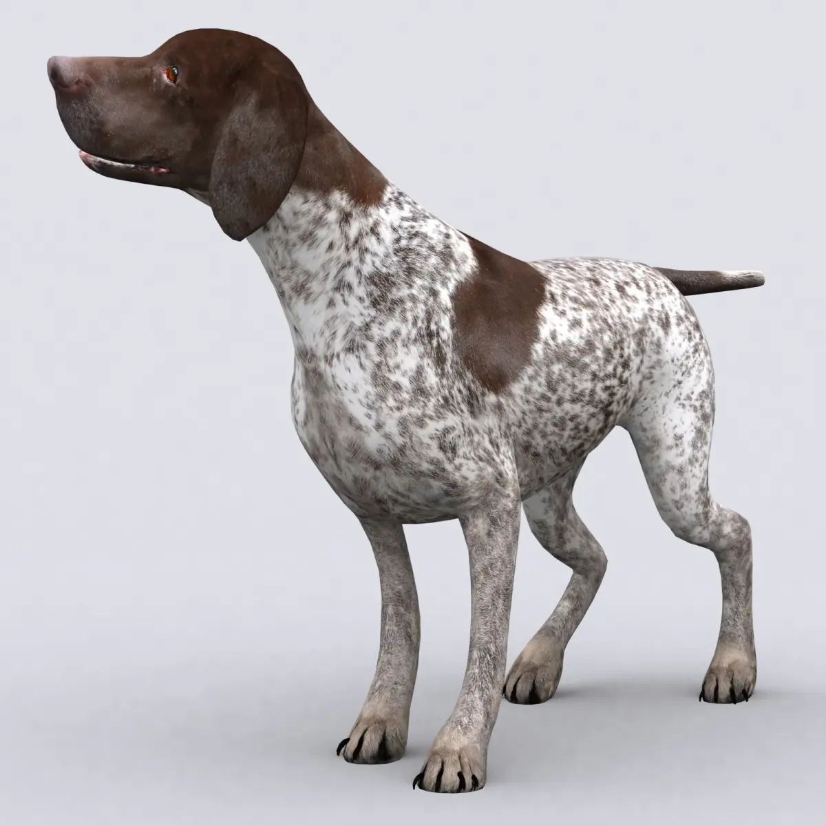 German shorthaired pointer dog animated lowpoly 3d model. 2212 triangles mesh. Highly detailed 2048x2048 textures. Diffuse, normal and specular maps.