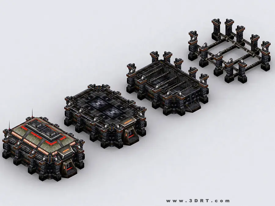 Infantry Barracks 3D model. Full building with interior is textured with a single 2048x2048 texture pattern Normal, specular and illumination maps are included. 3 extra construction stages models included. Separate animated file of quick building. Triangles count - 3050