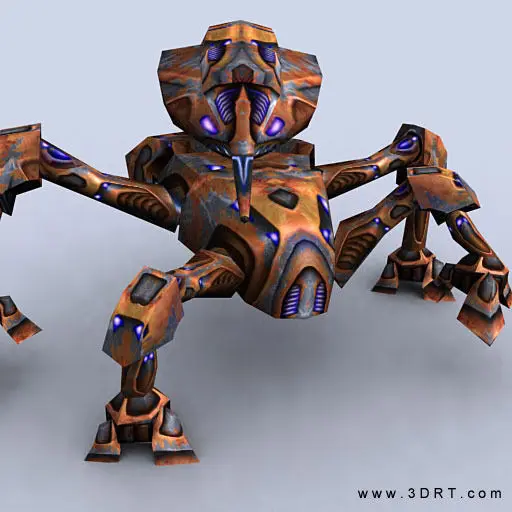 Fully rigged and animated mech crawlers 3D pack. 8 styles texture variations 512x512 .jpg texture Bump and illumination textures included. Model is optimized for real-time engines. Triangles count: 1134 Animations list: 000 - 040 Walk 050 - 090 strafe right 100 - 140 strafe left 150 - 180 turn right 190 - 220 turn left 230 - 300 death-01 310 - 350 death-01