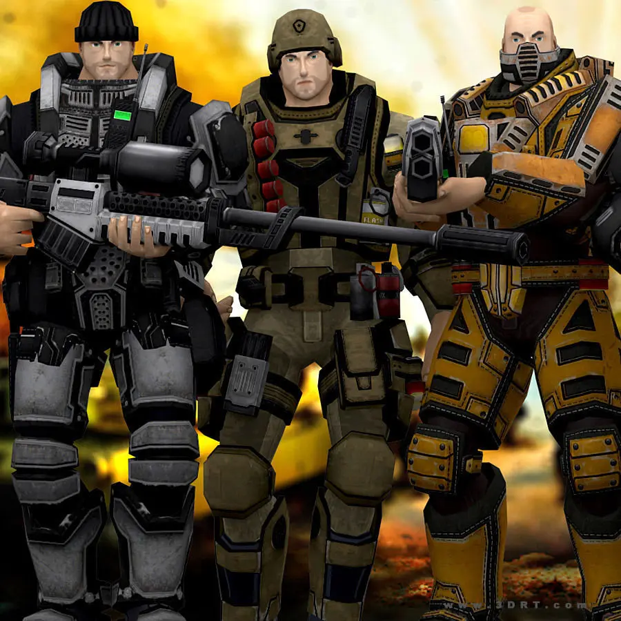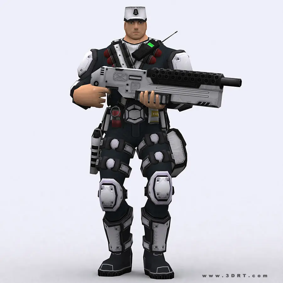 X-commanders modular lowpoly sci-fi soldiers pack. Base body with switchable: 10 heads, 10 headgear, 5 vests, 5 shoulders, 5 forearm pads, 5 knee pads, 5 elbow pads, 5 belts, 5 thigh armor, 5 boots. 5 guns and 5 pistols. Single .tga 2048x2048 texture pattern is used for the whole model with armor and guns. 10 texture skin versions. Normal, specular and illumination maps included. Just ~5-7k triangles per average armored character including the gun. 149 animations! 2 full sets for 2hand gun and pistol.