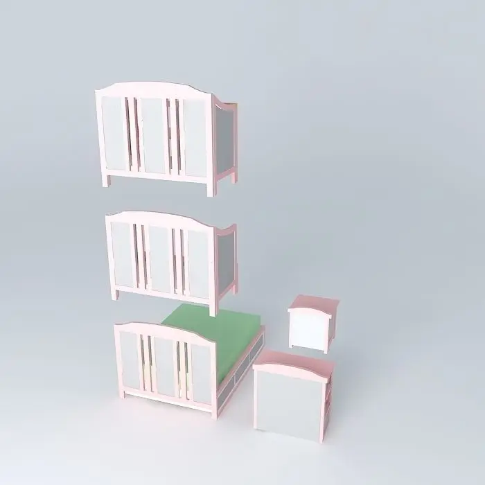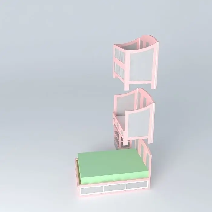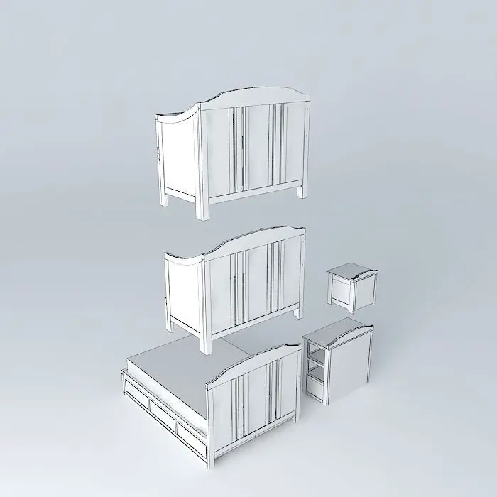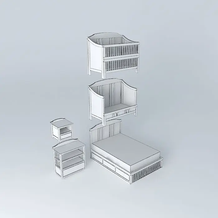 This 3D model was originally created with Sketchup 13 and then converted to all other 3D formats. Native format is .skp 3dsmax scene is 3ds Max 2016 version, rendered with Vray 3.00 Crib > Child's Bed > Full-Size Bed / Pedestal Bed Most dimensional lumber = 3/4" thick Mattress Sizes Crib = 28 x 53 Full = 53 x 75