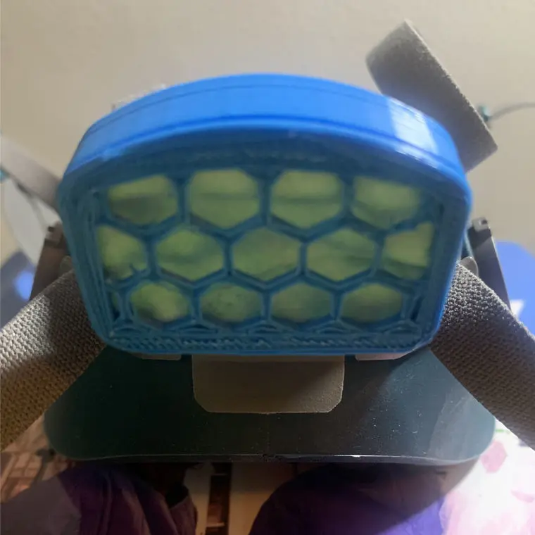 Made specially for health care workers, this design allows you to fit a cut out of a normal face mask and place it inside the respirator.