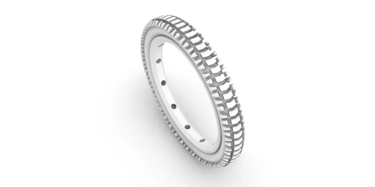 Dimensions and details of the ring profile: The ring cross-section is (wide x high) 3.5x4mm. The tire tread is 0.6mm thick and the finest part runs out in 0.14mm width. This makes the model perfect for testing and calibrating your 3D printer. Because of the fine details, the model does not comply with the design guides of the suppliers of the lost wax metal casting. If you insist on casting it anyway, you will have to expect softened details in the final casting. It is best to ask the supplier for an estimate. The rings are ring size 58, if you need a different ring size you can scale the model.