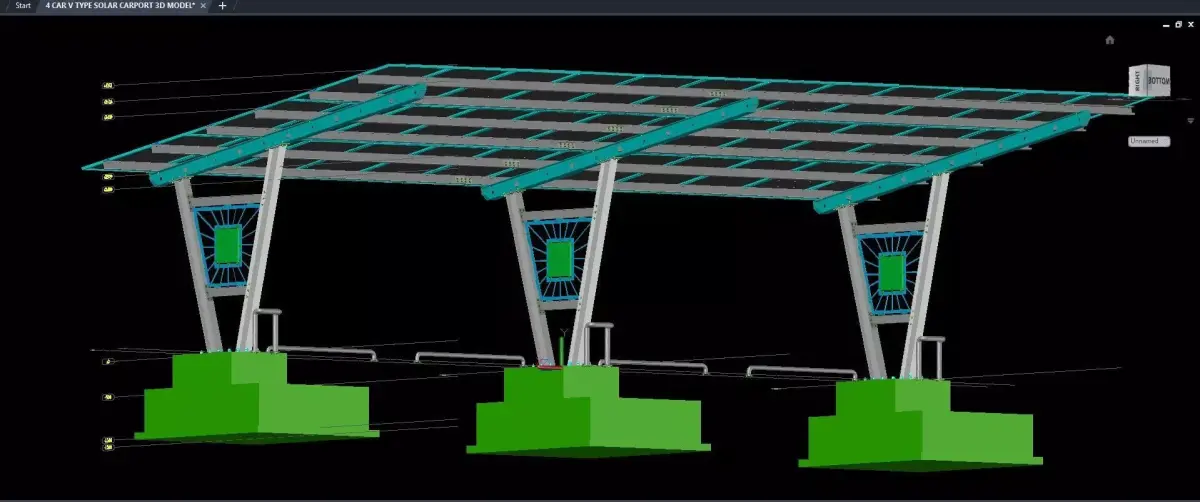 4 CAR V TYPE SOLAR CARPORT 3D MODEL