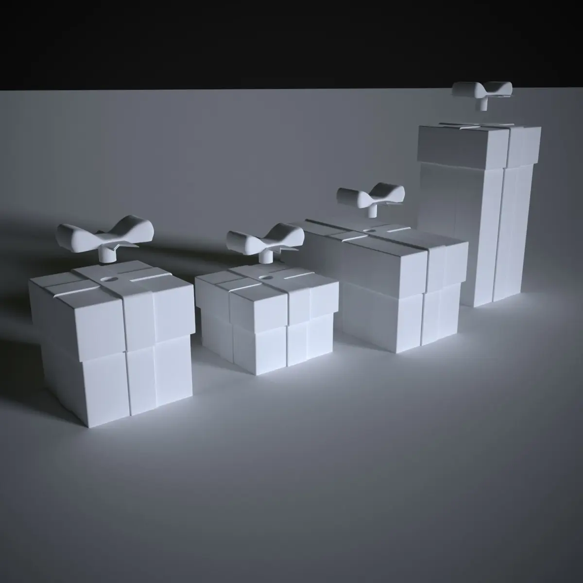 4 holiday gift models for 3D printing divided into parts for easy assembly and printing. The model is made in blender and consists of 102,150 polygons for two models.