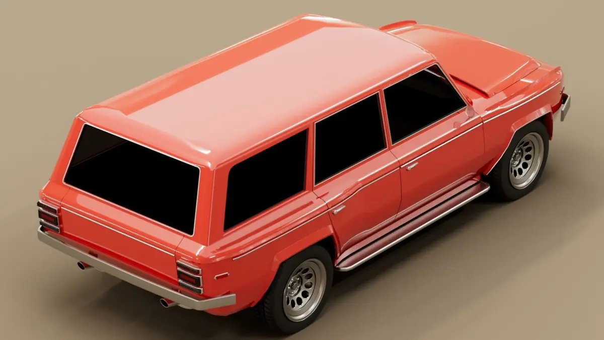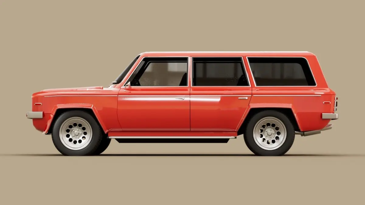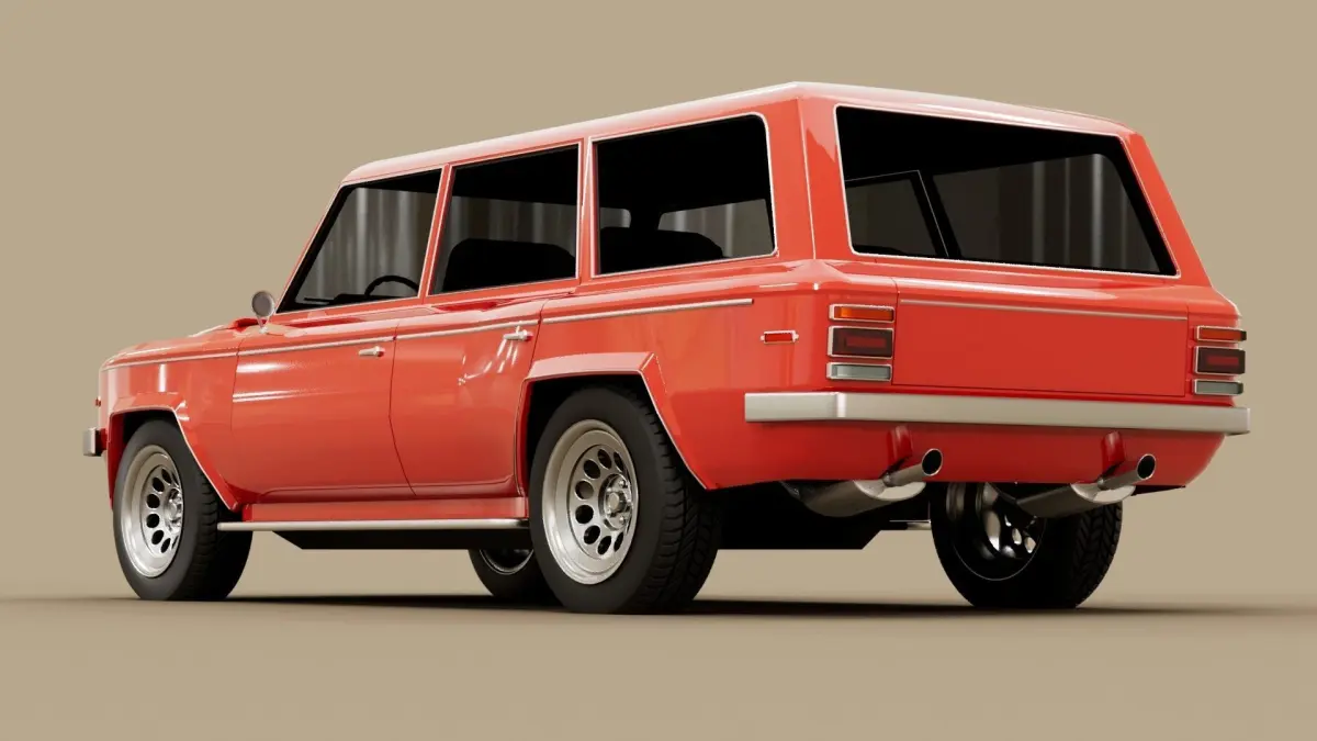 About Car: The idea of this car was born when I was working on my other 70s coupe. It was ment to fill the gap of generic cars in my 70s automotive car pool. Because of the period there were very little SUV's or 4x4 to get design inspiration from. That is why this designed is based on 70s cars elements and basic SUV shape.