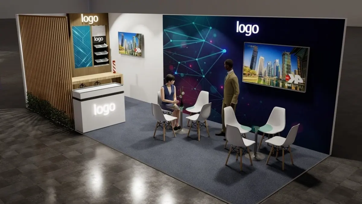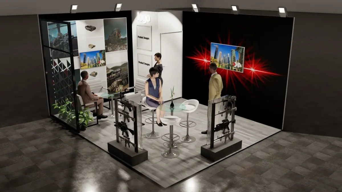 4 different exhibition stand designs for a optic company can be modified in other companies easily .Each stand has a dedicated VIP area and a discussion table along with tv screens .All the stands are detailed in all aspects with partitions, light fixtures , backwall graphics , etc .All stands are enclosed inside a box and they all are in seperate groups.The model is initially made in sketchup and rendered in lumion . DM me if you require any changes in the model or any other file format I will do it for free .Note : human figures and light effects are available only in the Lumion 11 (ls11) file , rest all file formats donot contain these .