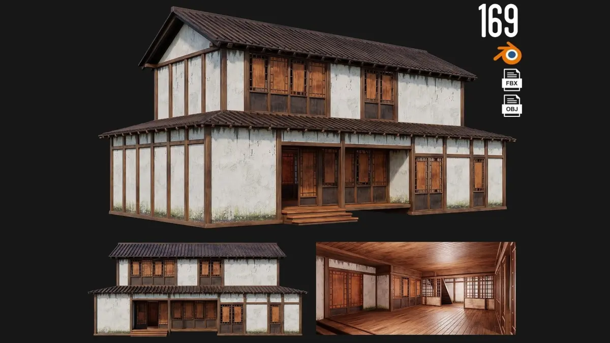 4 Old Japanese Building Packs 4K Textures GameReady 169-170-171-172