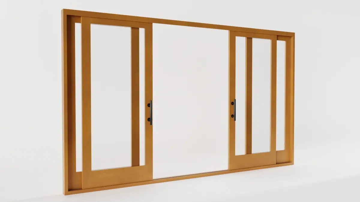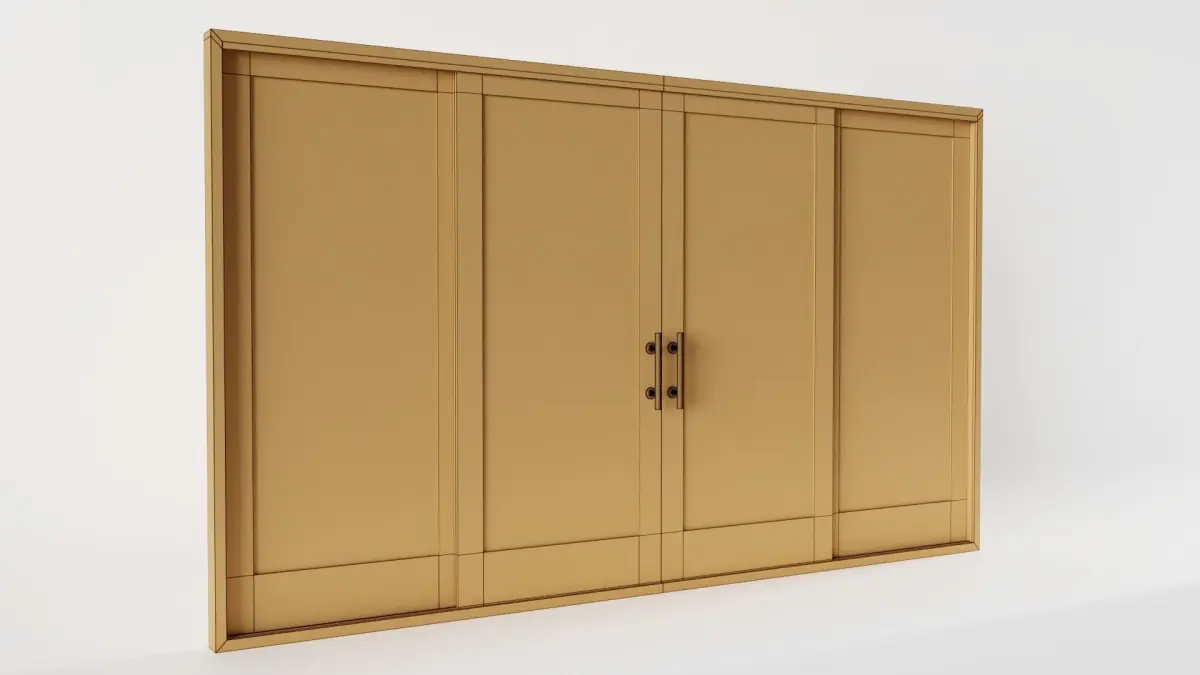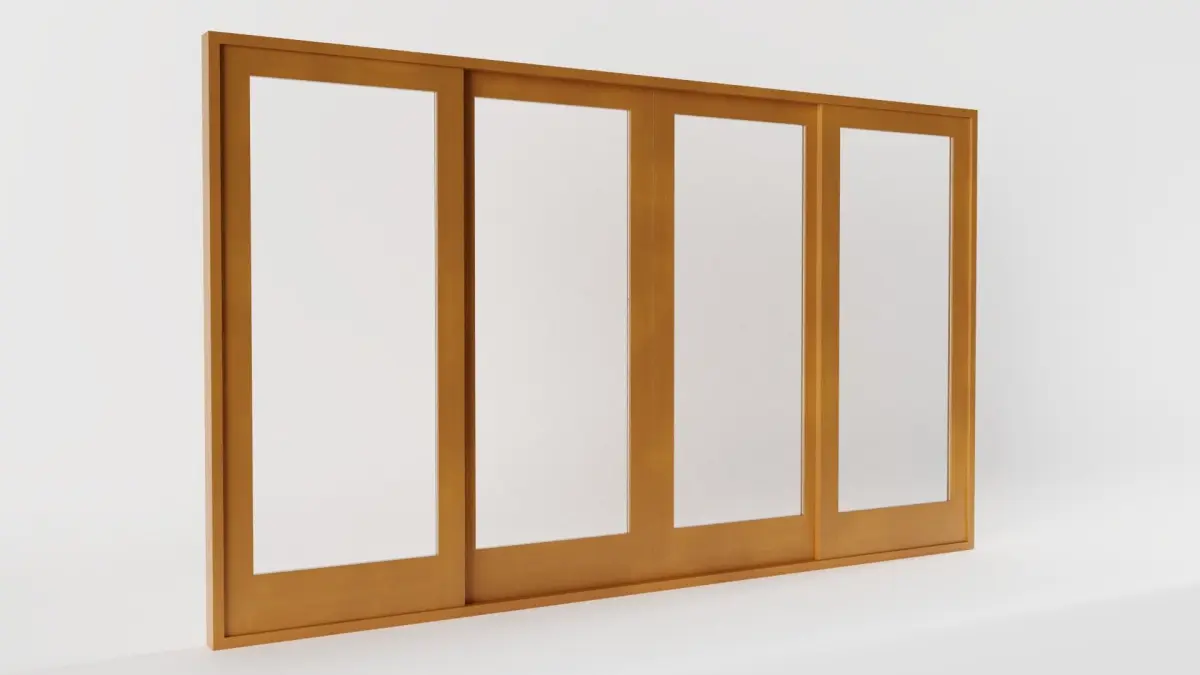 The model has real world scale and measures approximately 9 cm in depth, 358 cm in length and 208 cm in height (measurements with frame). It consists of three seperate, but grouped and parented meshes: 4-Panel Sliding Patio Door_frame, 4-Panel Sliding Patio Door_left and 4-Panel Sliding Patio Door_right. Exception: in the .ply-file they are all joined together.