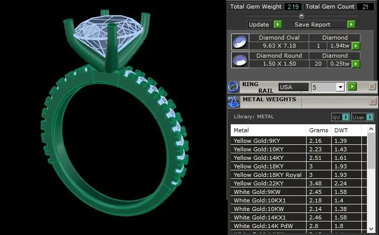Engagement Ring Diamond Size: 9.63mm by 7.18mm (center stone) , 1.50mm 20 count