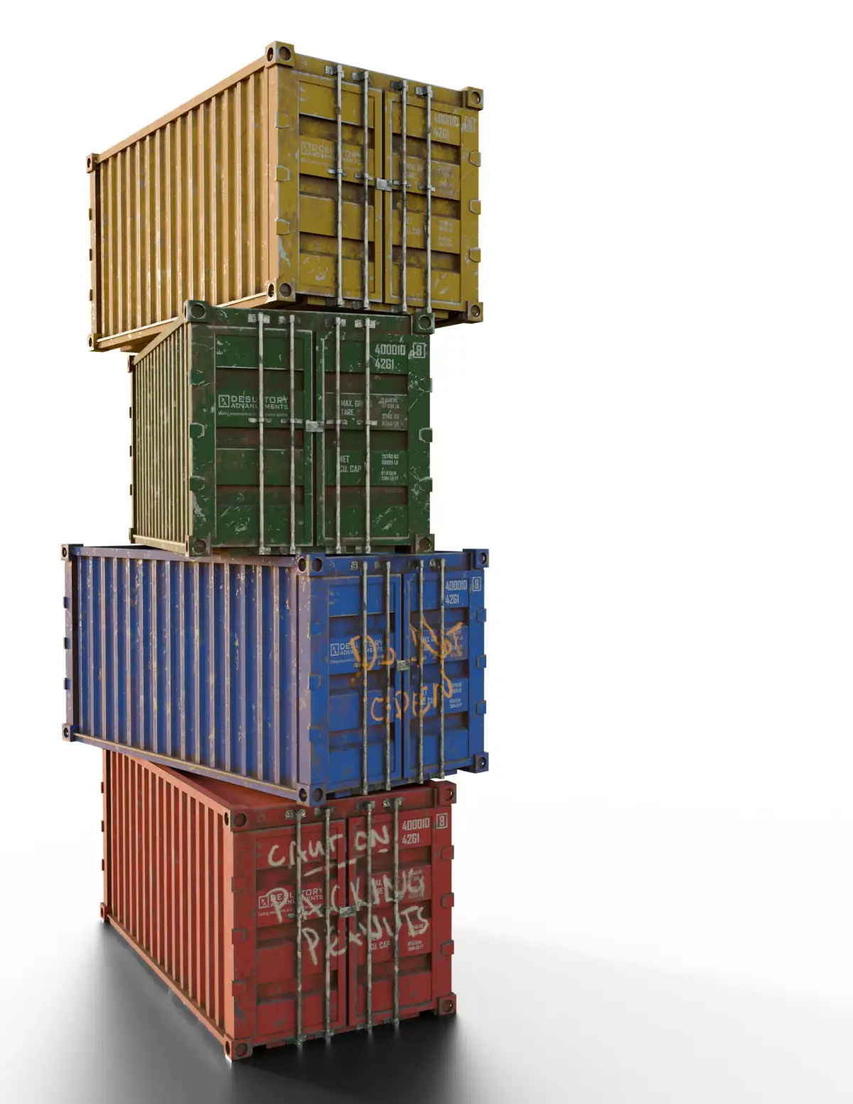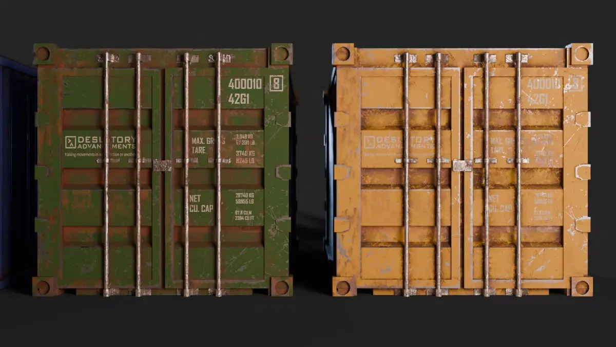 - Polycount (per container): 5,396 vertices; 9,303 edges; 3,995 faces; 10,216 triangles