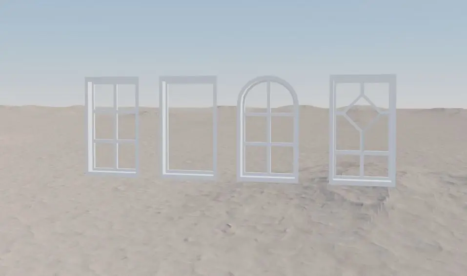 4 Types of windows Low-poly 3D model when you can use them for game.