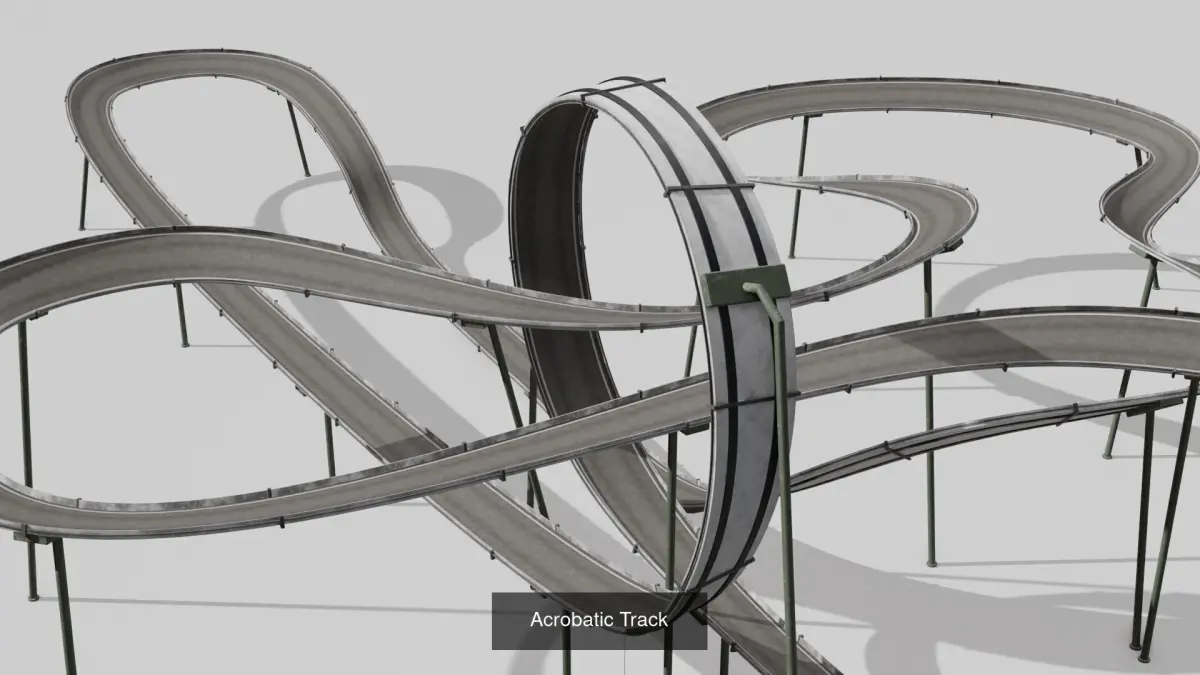 Includes PBR textures and materials for accurate lighting and photorealistic rendering Recalculated and optimized normals for perfect rendering Compatible with game engines and rendering software Available in multiple formats: FBX, OBJ (compatible with all 3D modeling software) Includes original Blender file for custom modifications Only the track is included (background or complete scene not provided) All textures and materials are included Stunt Tracks