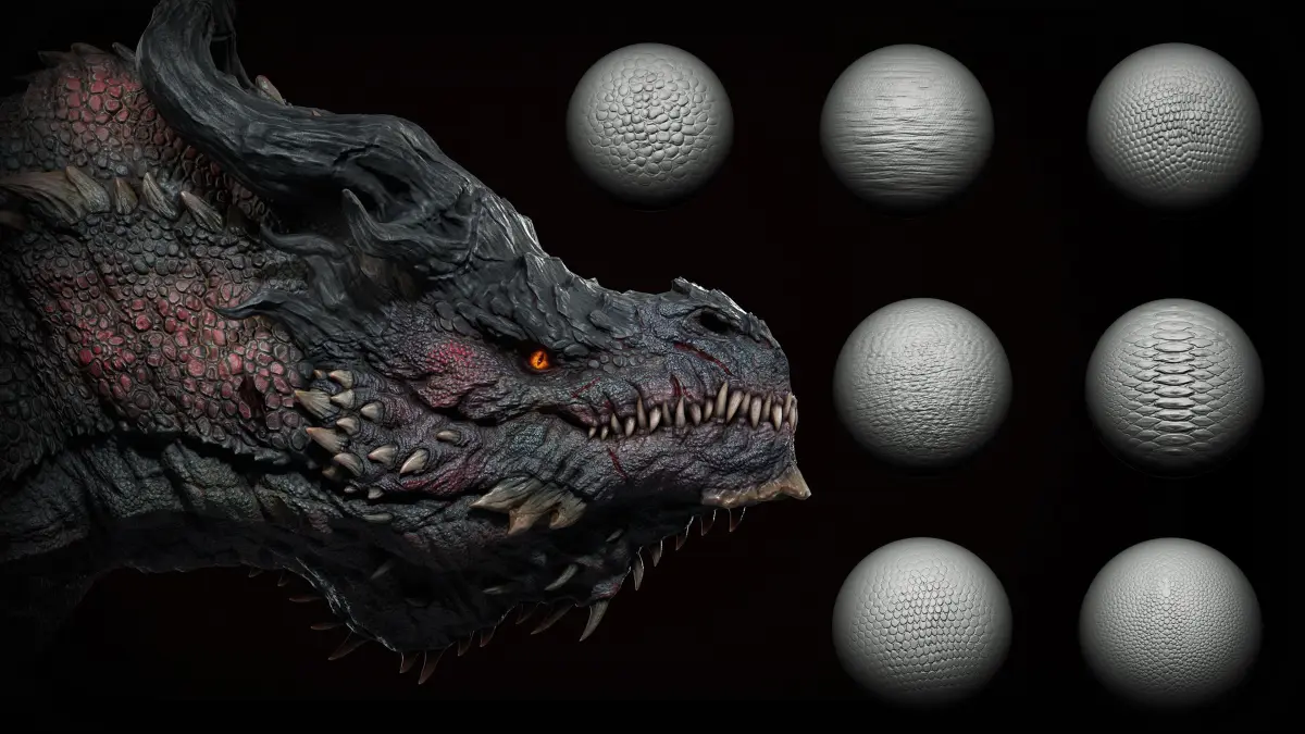 - 40 Dragon Skins VDM Brushes (For Zbrush 2022.0.6 or above version)