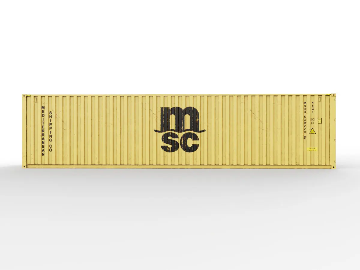 High quality shipping container model.Shipping Company- MSCContainer type- 40 feet High CubeModeled in Maya 2018 Real-world scale. All textures with 4096x4096. Maps- Base Color, Glossiness, ior, Normal map, Refection.