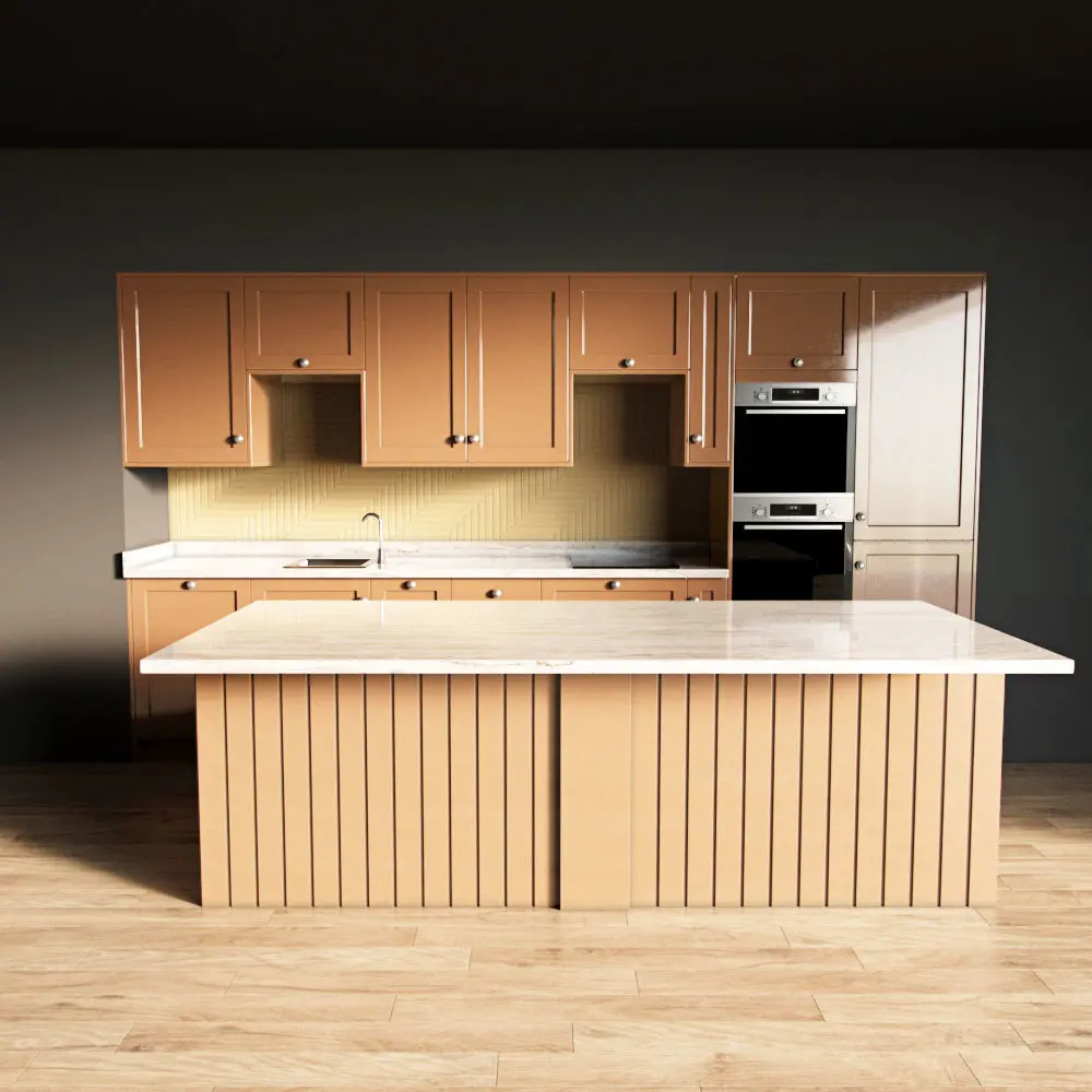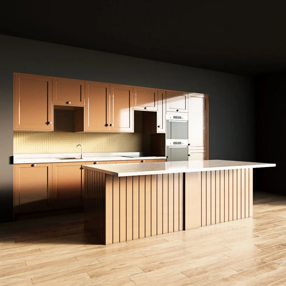 Only the kitchen and the island are present in the scene. The floor, walls, ceiling are yours.