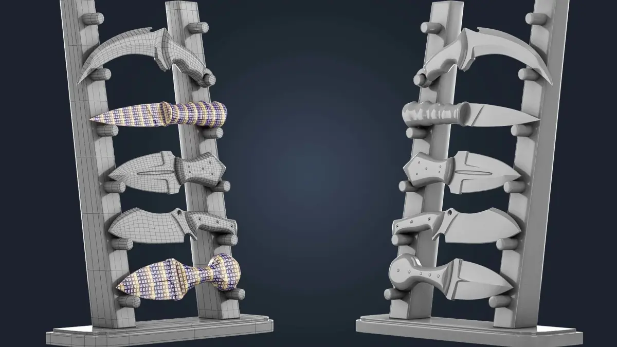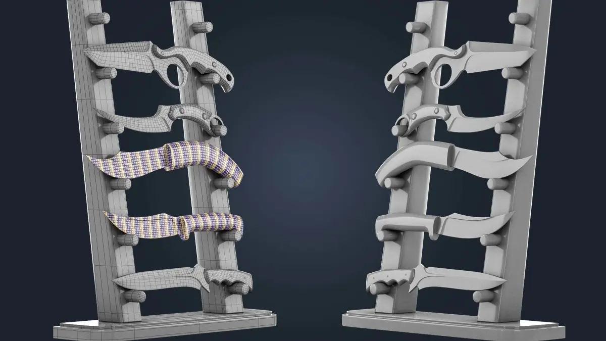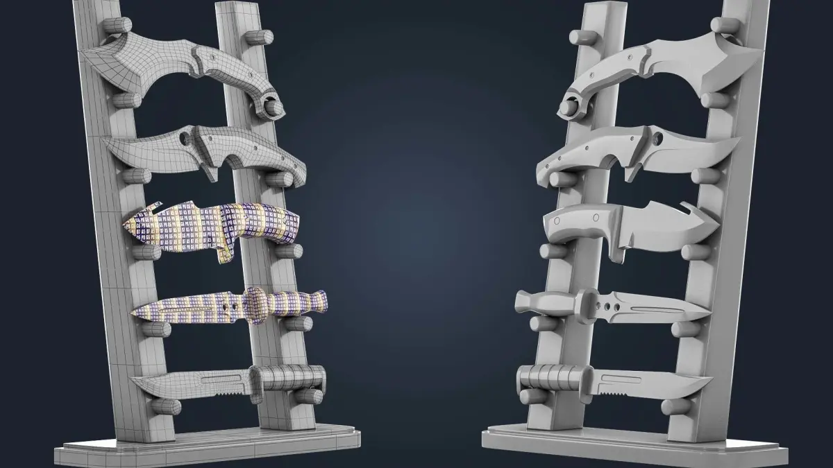 40 Knife Base Mesh - Vol 03 (Game Ready)In each project, many items required by the artists consist of repetitive and similar items. To increase the speed of each artist in all tasks and parts of the project, we need a library of suitable models for various purposes, such as creating high-poly or using as a low-poly. In this package, we gather around 40 different types of Knife for you. All of them have proper UVs, which you can create your high-poly and bake it. *info about this Product : *