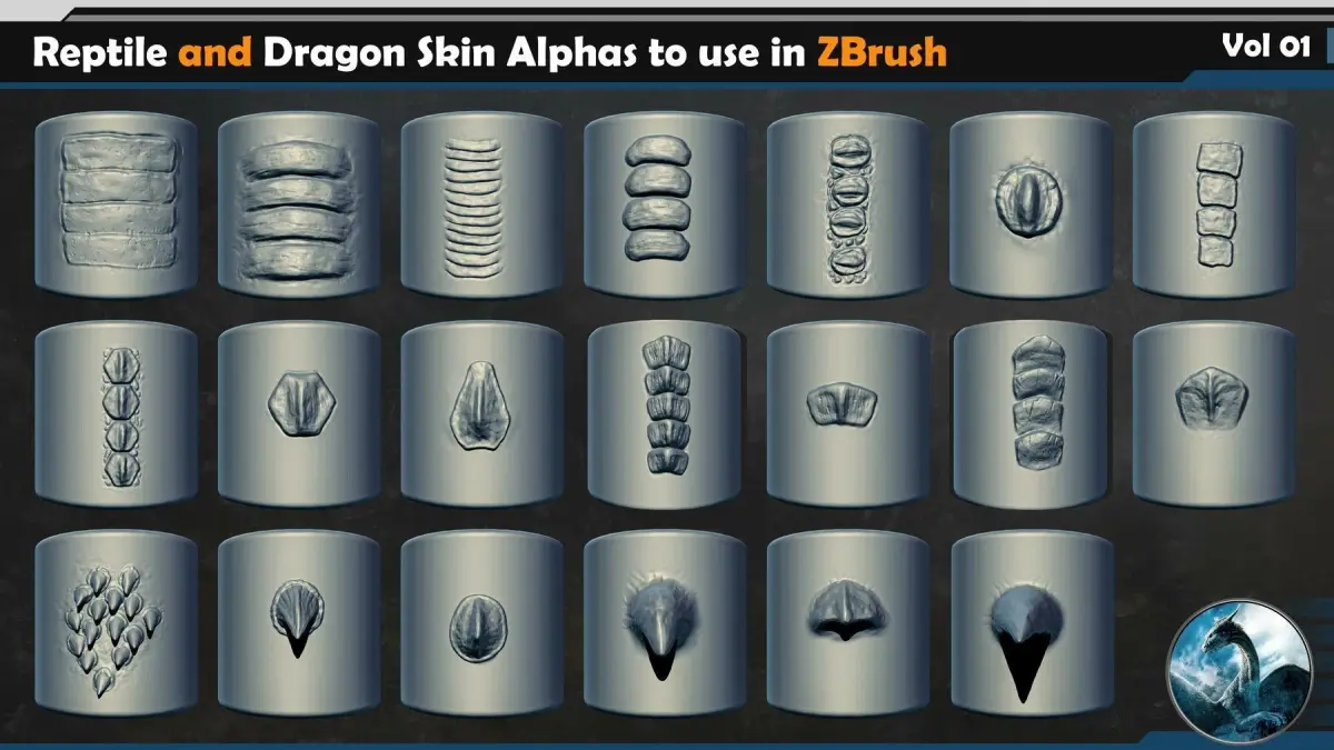 This Product include 40 Reptile and Dragon Skin Brushes Vol 01This product enables you to complete any creature or animal model, fill all the body levels of the characters, for example you can watch the preview video and enjoy.